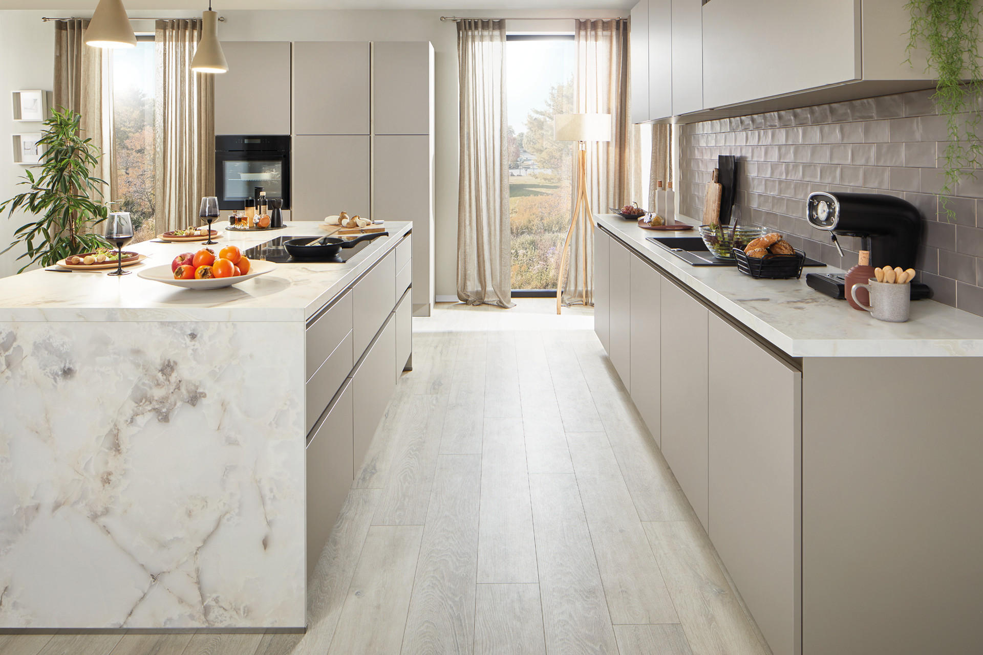 Eine grifflose Küche bietet ein zeitloses Design. Durch den Verzicht auf sichtbare Griffe entstehen klare Linien und eine nahtlose Optik, die den Raum größer und aufgeräumter wirken lassen. Diese Küchen passen perfekt in moderne Wohnkonzepte und bieten eine harmonische und einheitliche Gestaltung. Die Kombination aus Funktionalität und Stil macht die Küche ohne Griffe zu einer beliebten Wahl für designbewusste Haushalte.
