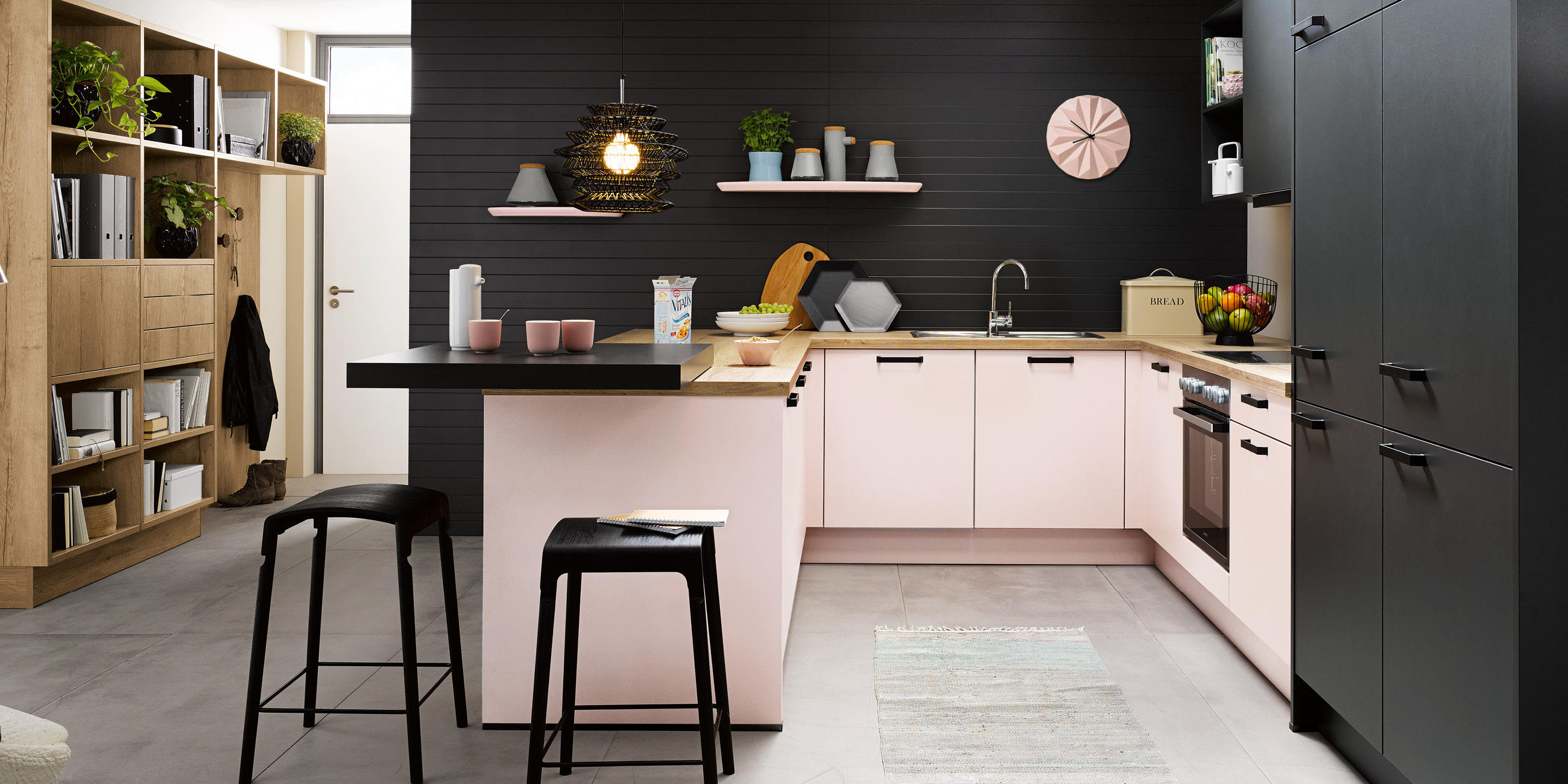 - Sozialer Mittelpunkt: Ist das Essen zubereitet, ist die Kücheninsel wohnlich genug, um gleich auch an Ort und Stelle zu essen – zum Beispiel an einem Barelement mit dem passenden Barhocker.
