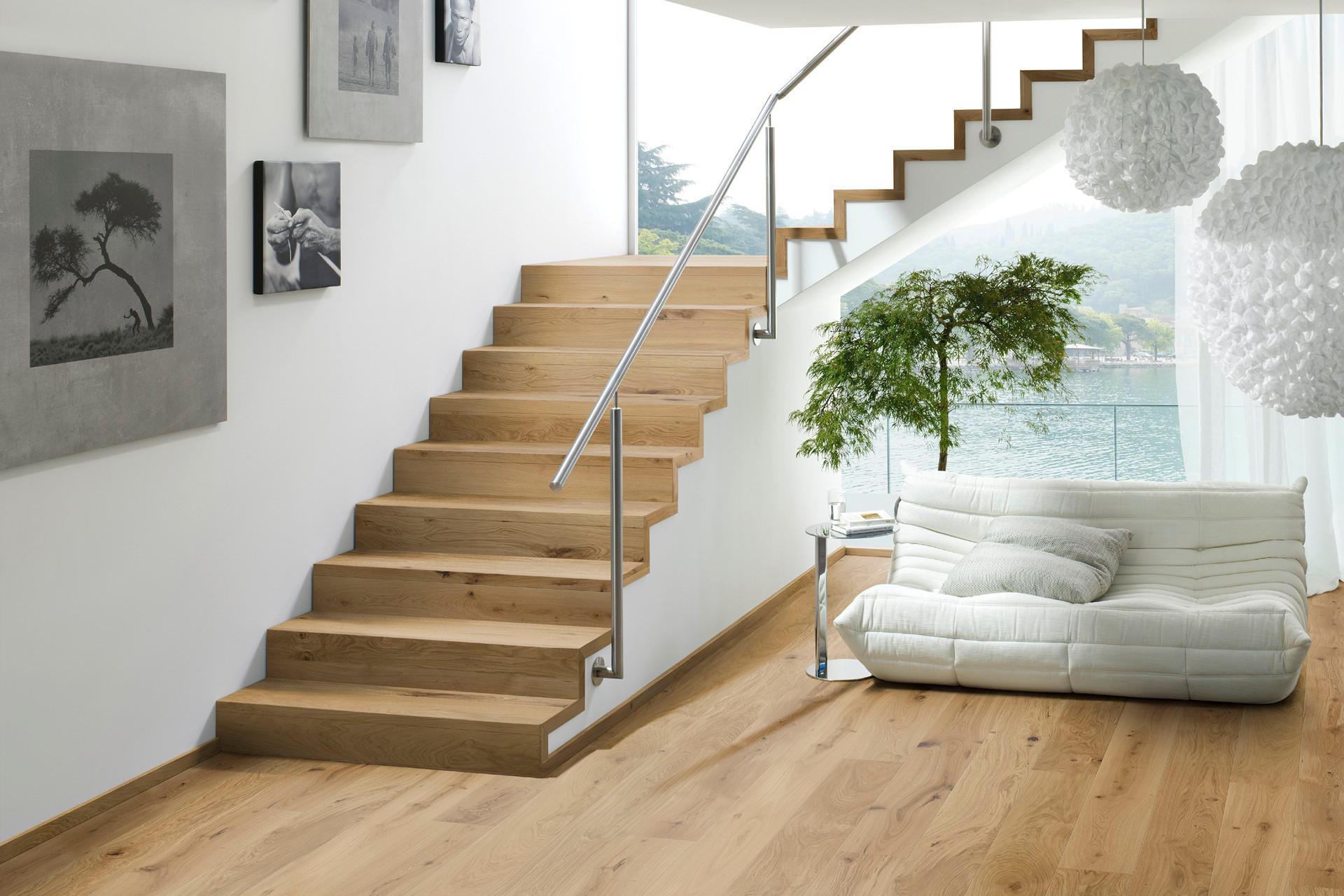Egal ob gerade oder gewendelt, in L- oder U-Form, mit oder ohne Podest: Am schönsten sind Treppen passend zum Fußbodenbelag im Wohnbereich. Für einen harmonischen Gesamt-Look sorgt eine entsprechende Stiegenverkleidung. Dazu fertigen wir eigens aus (fast) allen Parkett - und Vinylböden individuell angepasste Stufenkanten, Abschlüsse und Blenden für Sie an. Doch zuerst müssen Sie sich für eine der beiden Verlegearten entscheiden. Unsere Bodenberater unterstützen Sie gerne bei der Auswahl!