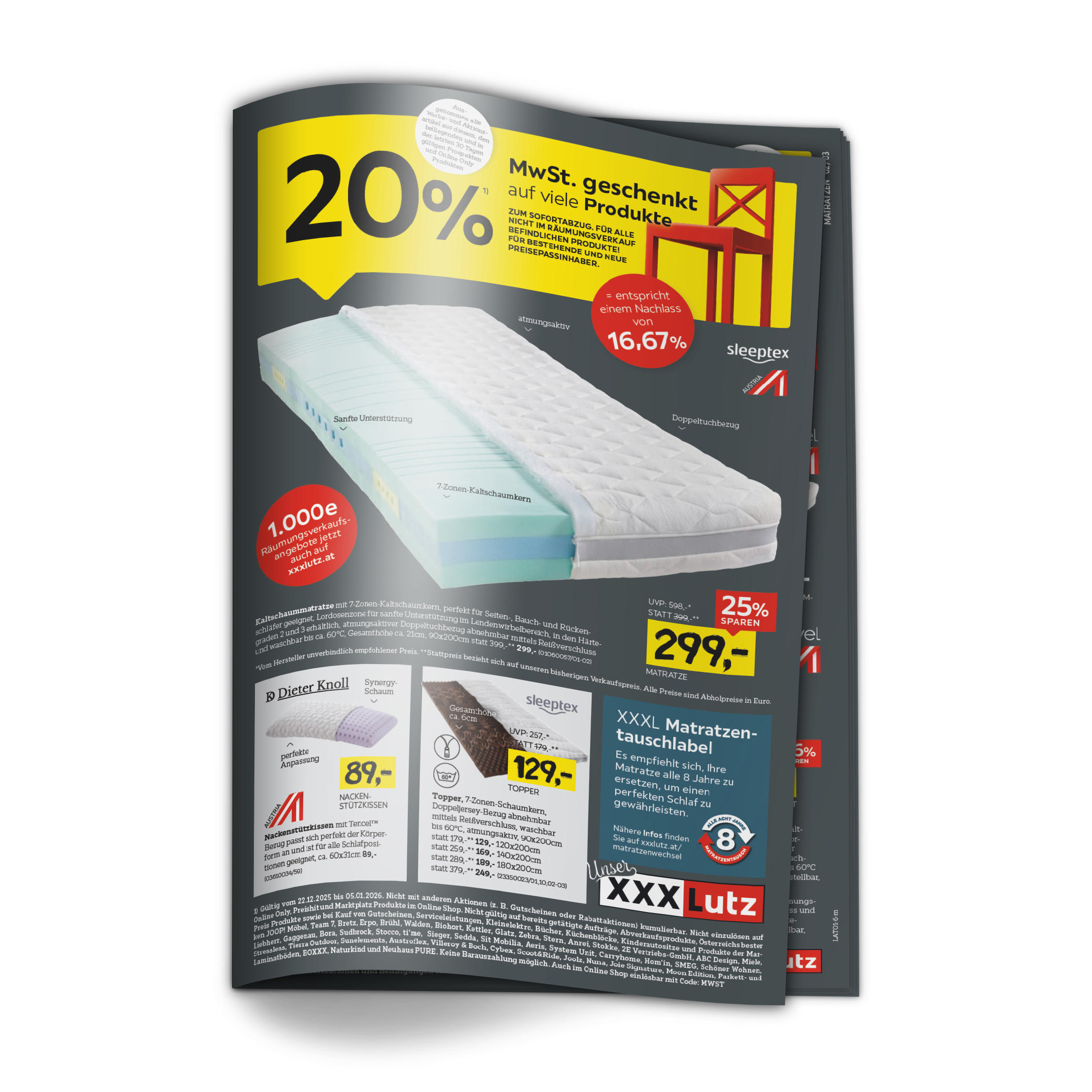 - Aktuelle Prospekte: Hier finden Sie die Antwort auf die Frage: „Was ist diese Woche bei XXXLutz im Angebot?“ – also alles vom XXXLutz Flugblatt bis zum Küchenmagazin.