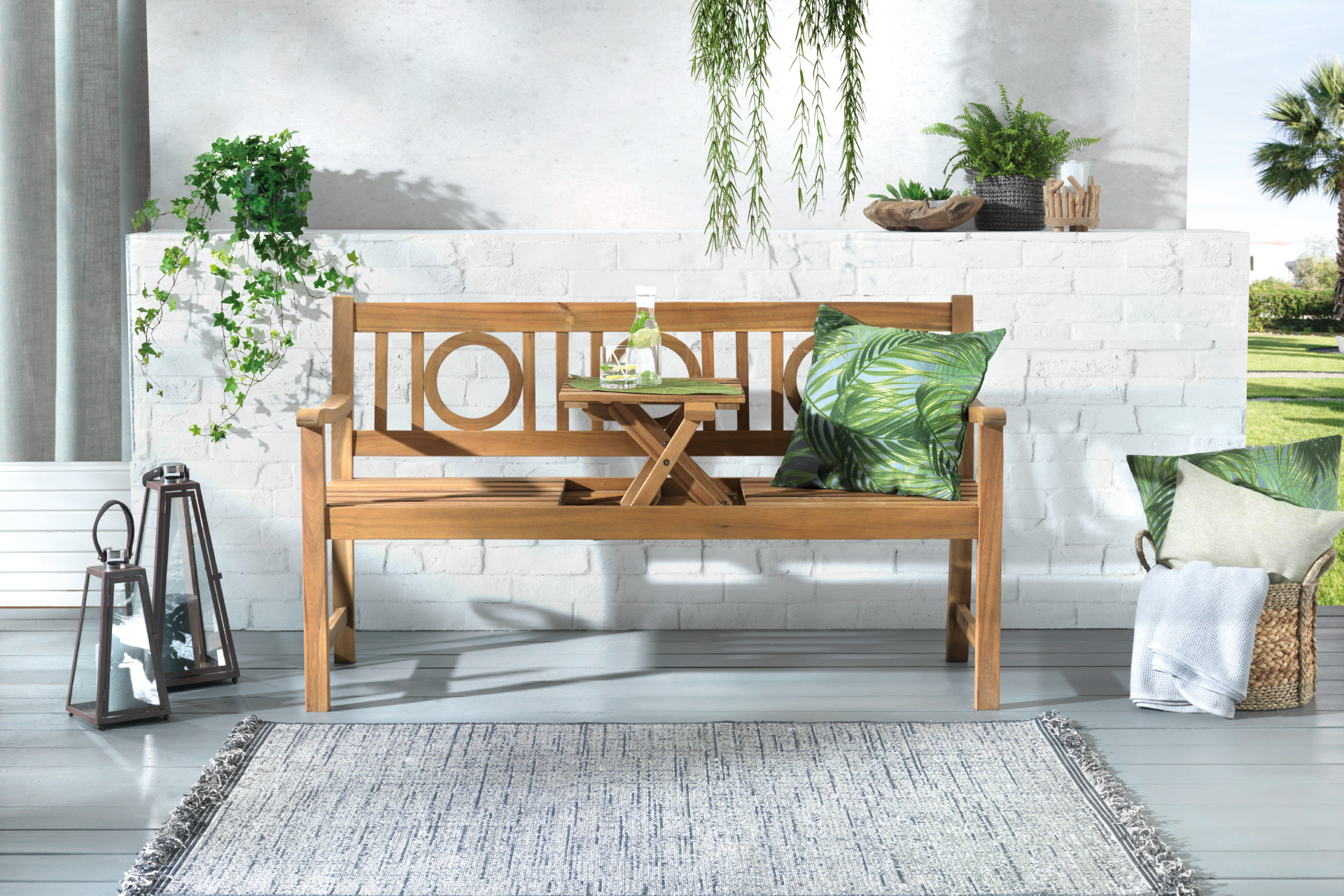 Harthölzer wie Teak oder Eukalyptus sind witterungsbeständig und damit robuste, langlebige Hingucker auf Ihrem Balkon oder der Terrasse. Der natürliche Werkstoff bringt zudem wunderschönes Country-Flair in Ihre Outdoor-Oase. Eine cremefarbene oder grüne Auflage passt toll auf diese Gartenmöbel!