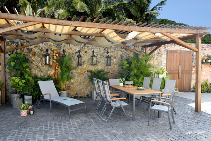 - Zur einheitlichen Outdoor-Oasen-Gestaltung sind aufeinander abgestimmte Gartentische, Stühle, Bänke und Sitzgruppen die richtige Wahl.