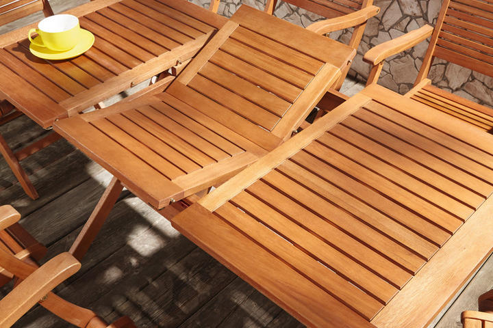 Klassische Holztische unterstreichen eine entspannte Atmosphäre im Garten. Üblicherweise wird für die Herstellung Akazien-, Eukalyptus- oder Teakholz verwendet. Besonders Eukalyptusholz wartet mit einer beeindruckenden Härte auf und neigt kaum zur Rissbildung. Auch Teakholz ist äußerst hochwertig und trotzt nahezu jeder Witterung.