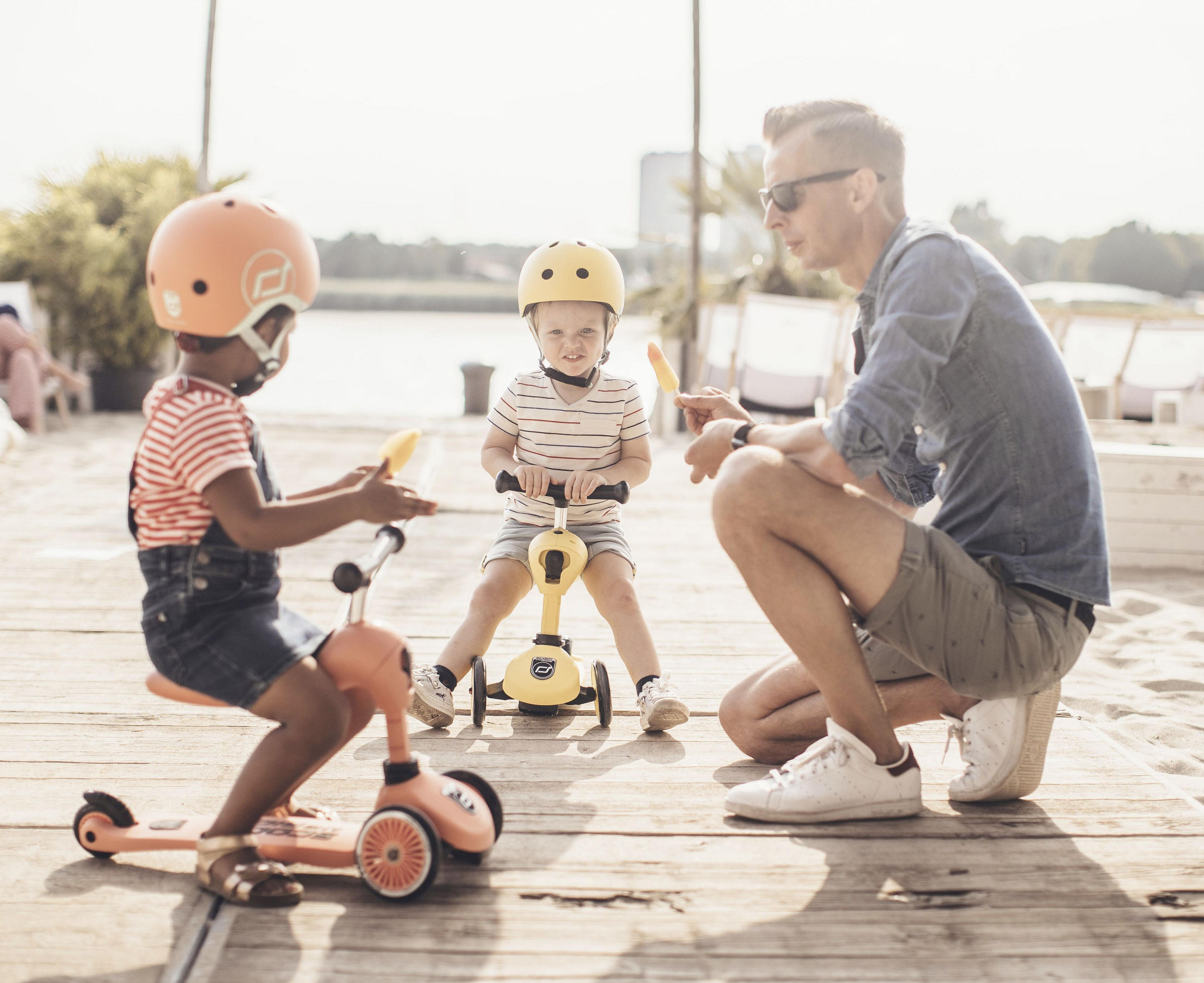 Dreirad für großen Fahrspaß. Mit Ausstattungen wie Sonnenschutz, Gurten, praktischen Fächern, Bremsen und Co. sind moderne Dreiräder ebenso zu haben. So oder so machen Tretfahrzeuge kleine Fahrer nicht nur stolz, sondern trainieren auch deren Muskeln und Koordinationsfähigkeit sowie die räumliche Vorstellungskraft. Wer dem Dreirad entwachsen ist, kann auf ein cooles Laufrad oder sogar auf ein