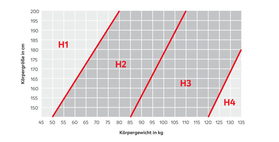 Wenn Sie eine neue Matratze kaufen, ist neben der Materialwahl vor allem der Härtegrad ausschlaggebend dafür, welche Matratze zu Ihnen passt. Er sorgt dafür, dass der Körper an den richtigen Stellen unterstützt wird, Sie jedoch nicht in der Matratze versinken. Ob Sie H1, H2, H3 oder H4 brauchen, orientiert sich in erster Linie an der Körperstatur und am eigenen Wohlbefinden. Die Grundregel lautet dabei: Je mehr Körpergewicht, desto härter sollte die Matratze sein, damit man nicht zu stark einsinkt. Die gängigsten Härtegrade sind H2 und H3.