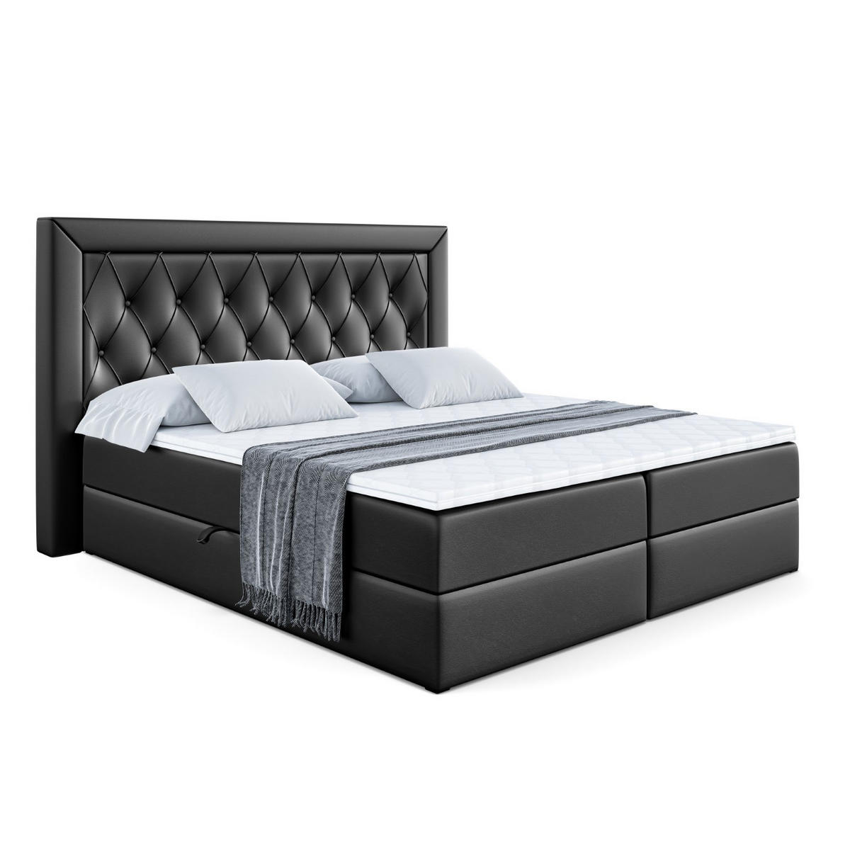 ALTDECOR BOXBETT mit H3-Matratze und Lattenrost - NOEL - 200x200 Schwarz Hochglanz