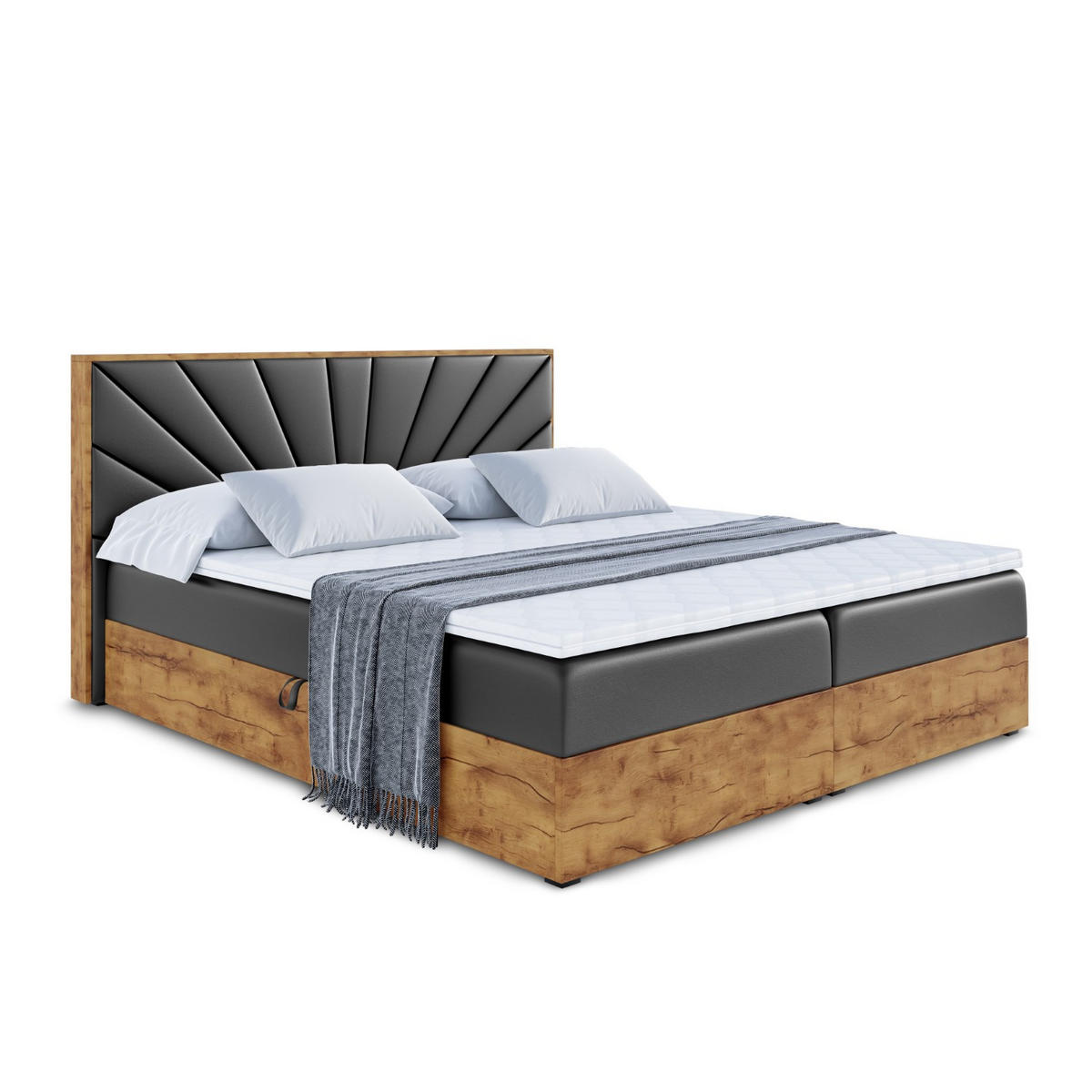 ALTDECOR BOXBETT mit Matratze H4 und Lattenrost - LOLLI6 - 200x200 - Schwarz Hochglanz