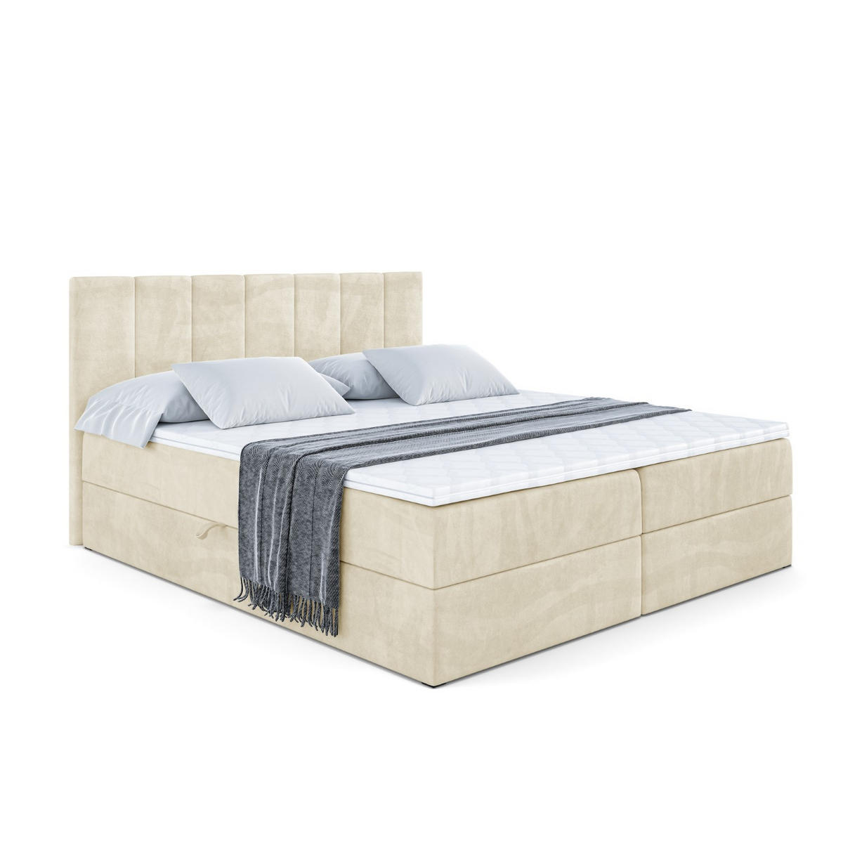 ALTDECOR BOXBETT mit Matratze H4 und Lattenrost - MOETI - 180x200 cm - H4 - Beige