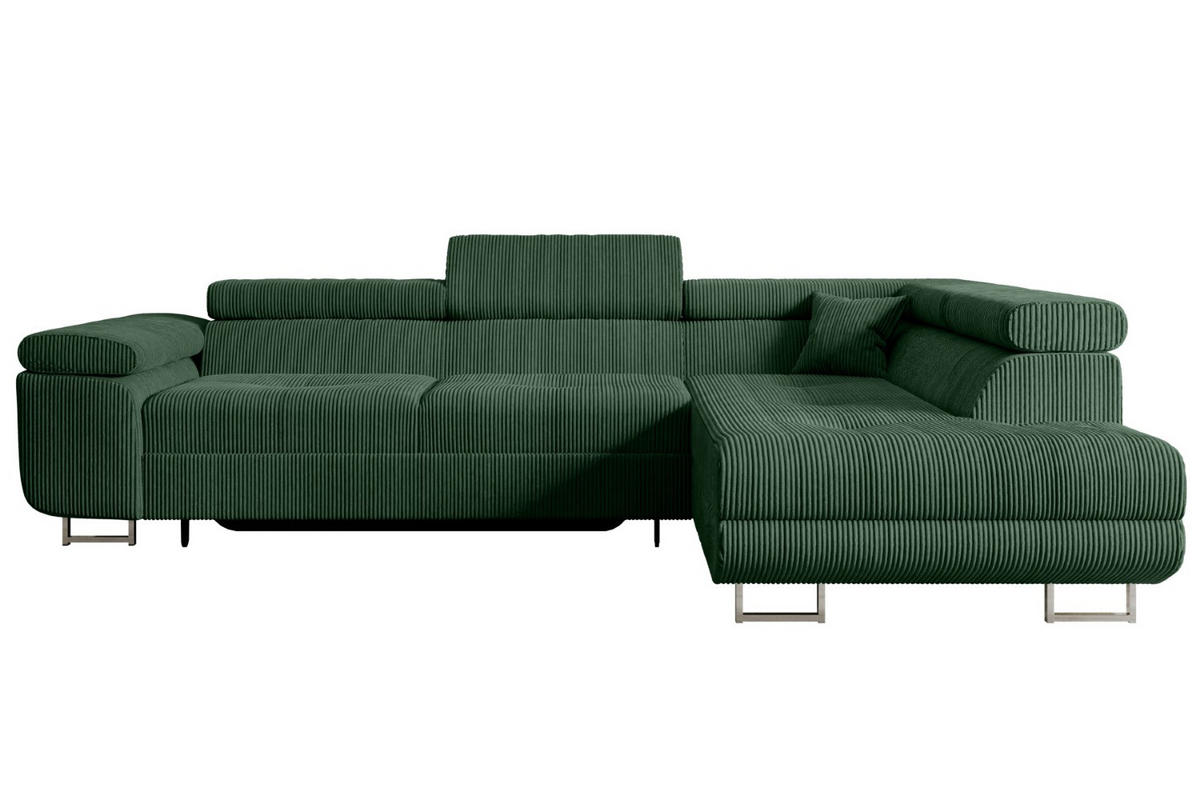 ALTDECOR ECKSOFA mit Schlaffunktion und Bettkasten GUSA-L 272x202x107 cm Grün Cord