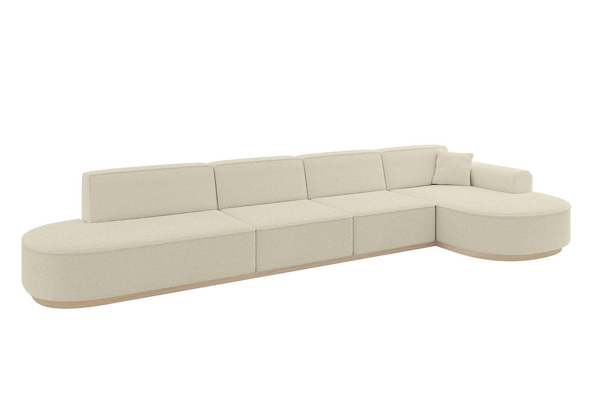 ECKSOFA Ottomane Rechts MARI-L3-v1 - 413x171x83 cm Beige Bouclé - Beige, Holzwerkstoff/Textil (171/413cm) - ALTDECOR