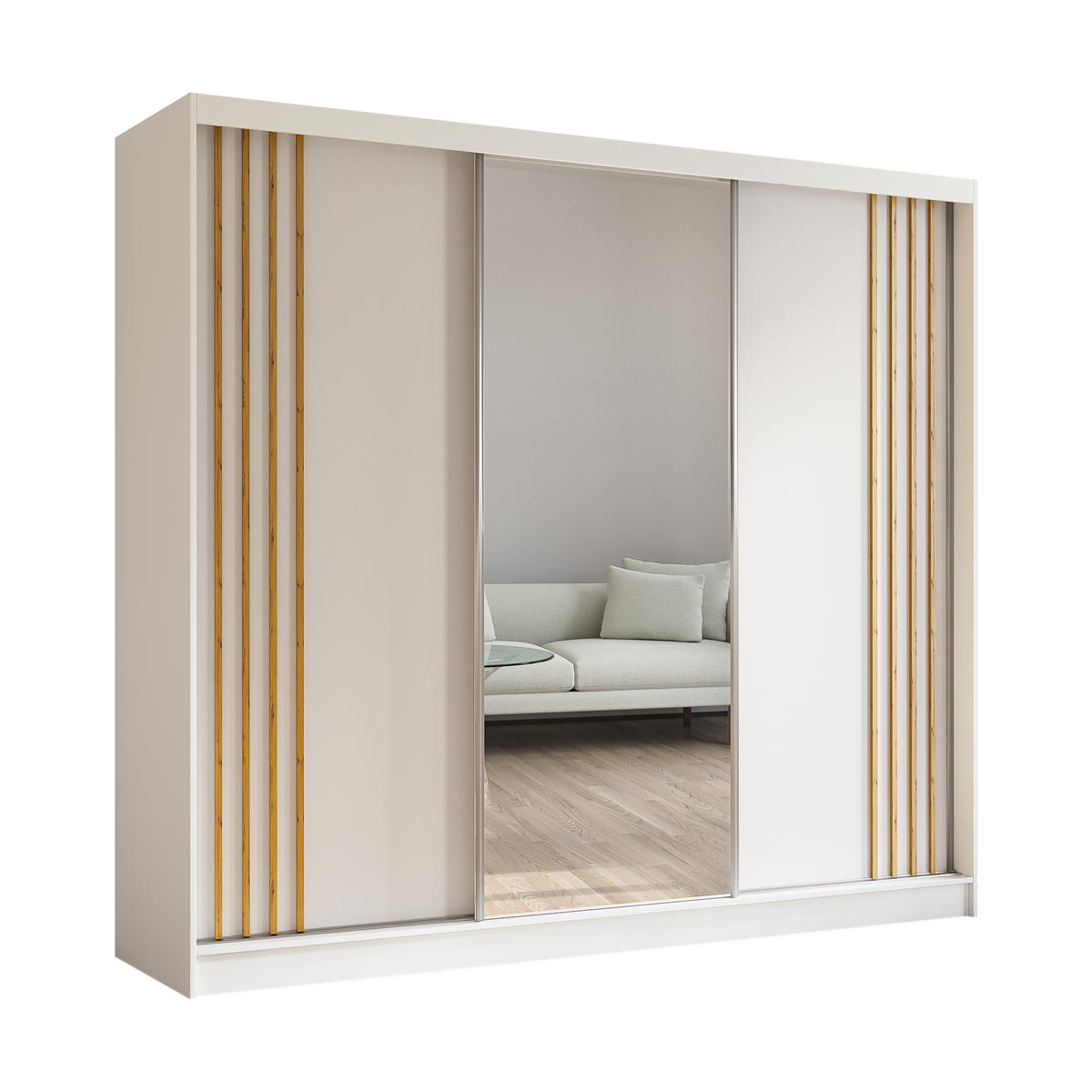 ALTDECOR KLEIDERSCHRANK mit Spiegel-Schiebetüren und Aluminium-Leisten, LED-Beleuchtung - NALLA - 240 cm Weiß+Weiß+Artisan