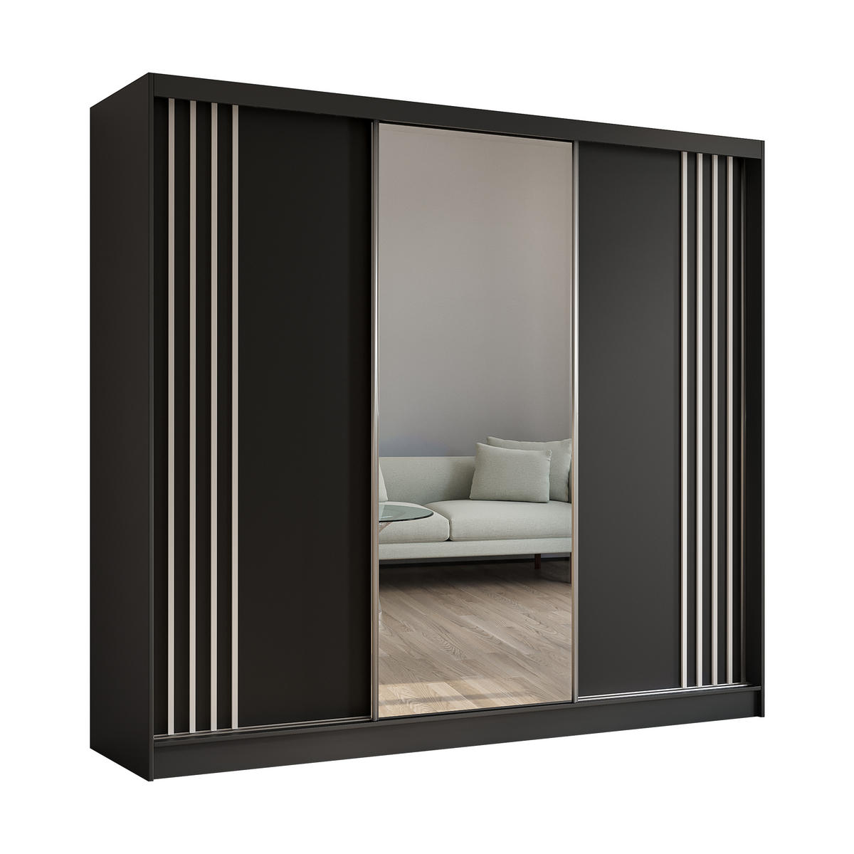 ALTDECOR KLEIDERSCHRANK mit Spiegel-Schiebetüren und Aluminium-Leisten - NALLA - 240 cm Schwarz+Schwarz+Weiß