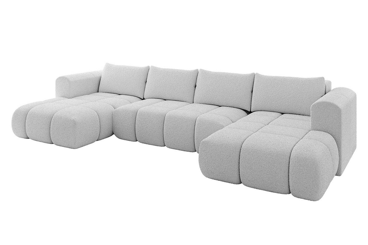 Das geräumige Polstersofa mit Schlaffunktion ist ein universelles Möbelstück für die ganze Familie.Das Schlafsofa in U-Form bietet einen hohen Sitz-, Liege- und Schlafkomfort in jeder Situation. Dank ihrer gemütlichen Optik mit Sofakissen ist die Couch dazu hervorragend geeignet, um mit Familie oder Freunden Zeit zu verbringen Die robuste Auszugsmechanik ist sehr einfach zu bedienen und verwandelt die Wohnzimmercouch im Handumdrehen in ein bequemes Gästebett. Die Standfestigkeit und Langlebigkeit der Sofalandschaft wird durch das stabile Untergestell aus Möbelplatte und Holz garantiert. Für mehr Ordnung ist die gemütliche Couch mit einem praktischen Bettkasten zur Aufbewahrung von Bettwäsche oder Decken ausgestattet. Komfort, der bleibt – Hochwertiger SchaumstoffIm Sitzbereich wird hochwertiger Polyurethanschaum verwendet – ein Material mit erhöhter Festigkeit und hoher Widerstandsfähigkeit gegen Verformung. Eine ideale Lösung für alle, die Wert auf Langlebigkeit und festen Sitzkomfort legen. Bitte beachte: