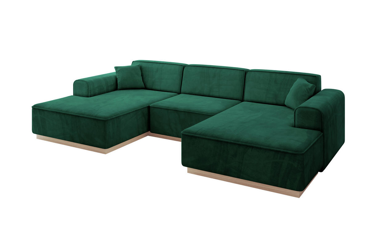 Das moderne Polstersofa ist ein universelles Möbelstück. Das Sofa in U-Form bietet hohen Sitz- und Liegekomfort in jeder Situation. Dank seiner gemütlichen Optik mit Sofakissen ist die Couch hervorragend geeignet, um mit Familie oder Freunden Zeit zu verbringen. Der elegante Polsterstoff verleiht der rückenechten Polstercouch eine gewisse optische Leichtigkeit und rundet das Gesamtbild gekonnt ab. Das stabile Untergestell aus Möbelplatte und Holz garantiert die notwendige Standfestigkeit des Möbelstücks. Dieses Ecksofa vereint zeitloses Design mit höchstem Sitzkomfort. Die hochwertige Polsterung sorgt für angenehme Unterstützung und lädt zum Entspannen ein. Dank der robusten Konstruktion und sorgfältig ausgewählten Materialien überzeugt das Sofa durch Langlebigkeit und Stabilität. Die harmonische Farbauswahl und das elegante Design fügen sich perfekt in verschiedene Wohnstile ein und setzen stilvolle Akzente im Wohnbereich. Ideal für gemütliche Abende mit Familie und Freunden – ein echter Blickfang für jedes Wohnzimmer.Komfort, der bleibt – Hochwertiger Schaumstoff