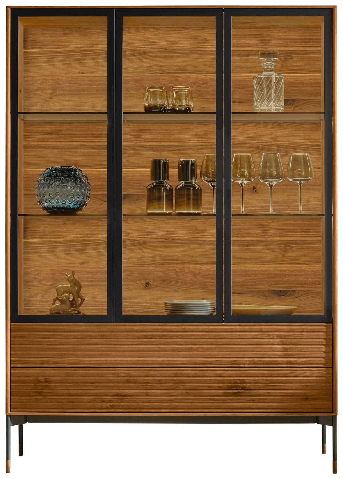 Anrei VITRINE in massiv Astnuss Schwarz, Nussbaumfarben