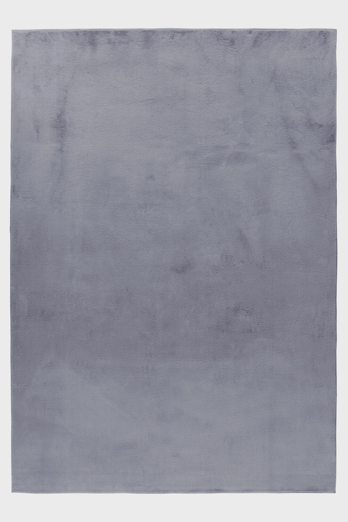 Dieser ca. 60 x 110 cm (B x L) messende Hochflorteppich in Grau kreiert gewebt und rechteckig ein heimeliges Ambiente.
