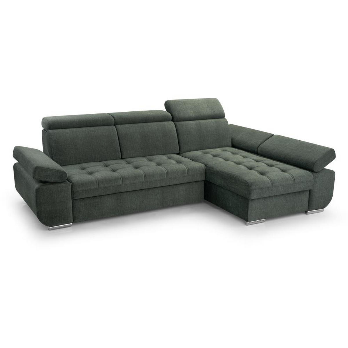 ECKSCHLAFSOFA Bianca dunkelgrün rechts - Chromfarben/Dunkelgrün, Textil (264/165cm) - Beautysofa