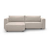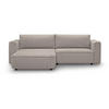 Die zwei großen Rückenkissen sorgen für optimalen Sitzkomfort und laden zum Entspannen ein, während das strapazierfähige Velo-Gewebe nicht nur durch seine Langlebigkeit, sondern auch durch eine große Auswahl an Farbtönen überzeugt. Diese vielseitige Stoffwahl ermöglicht es, das Sofa harmonisch in jeden Einrichtungsstil zu integrieren. Besonders hervorzuheben ist die universelle Ottomane, die nach Belieben auf der linken oder rechten Seite platziert werden kann, um sich perfekt an die Raumaufteilung anzupassen.
