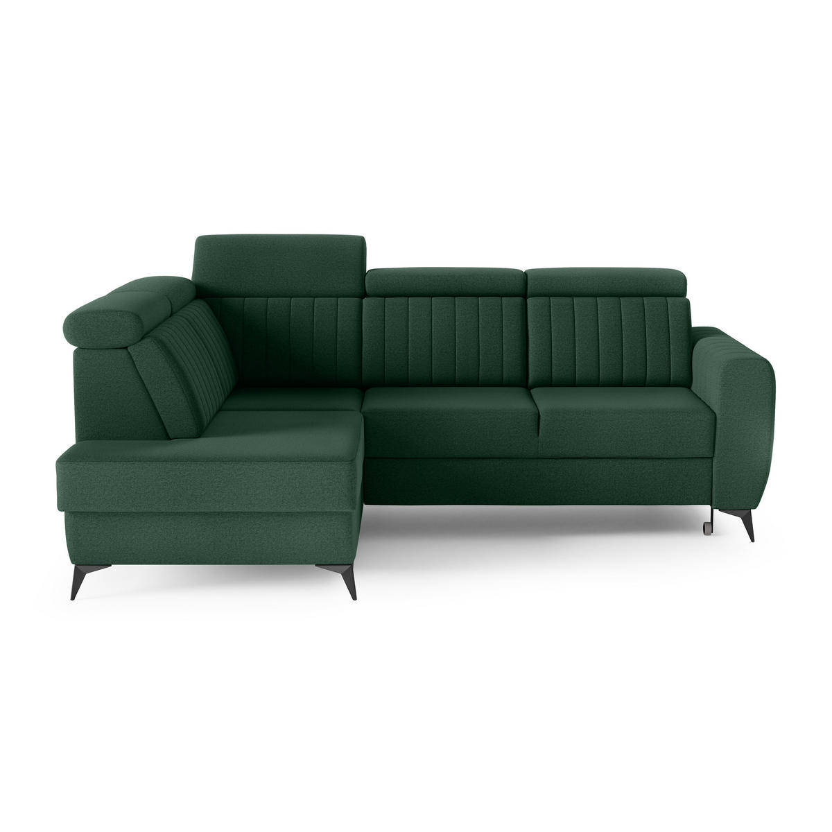 Beautysofa ECKSCHLAFSOFA Connor II verstellbare Kopfstützen, Dunkelgrün, links