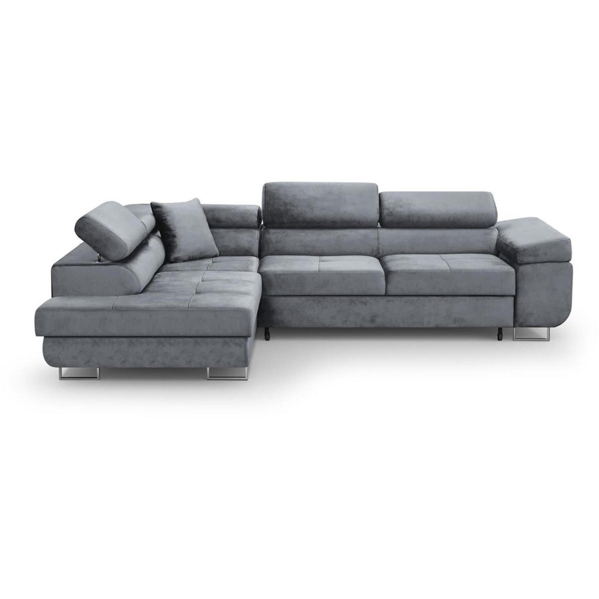 Das Ecksofa VILD L bringt modernes Design und höchsten Sitzkomfort in Ihr Wohnzimmer. Bezogen mit dem exklusiven Velourstoff MONOLITH, der nicht nur durch seine weiche Haptik überzeugt, sondern auch wasserabweisend ist, bleibt das Sofa lange schön und pflegeleicht. Unterstützt von eleganten Chrombeinen wird es schnell zum stilvollen Mittelpunkt Ihrer Einrichtung.