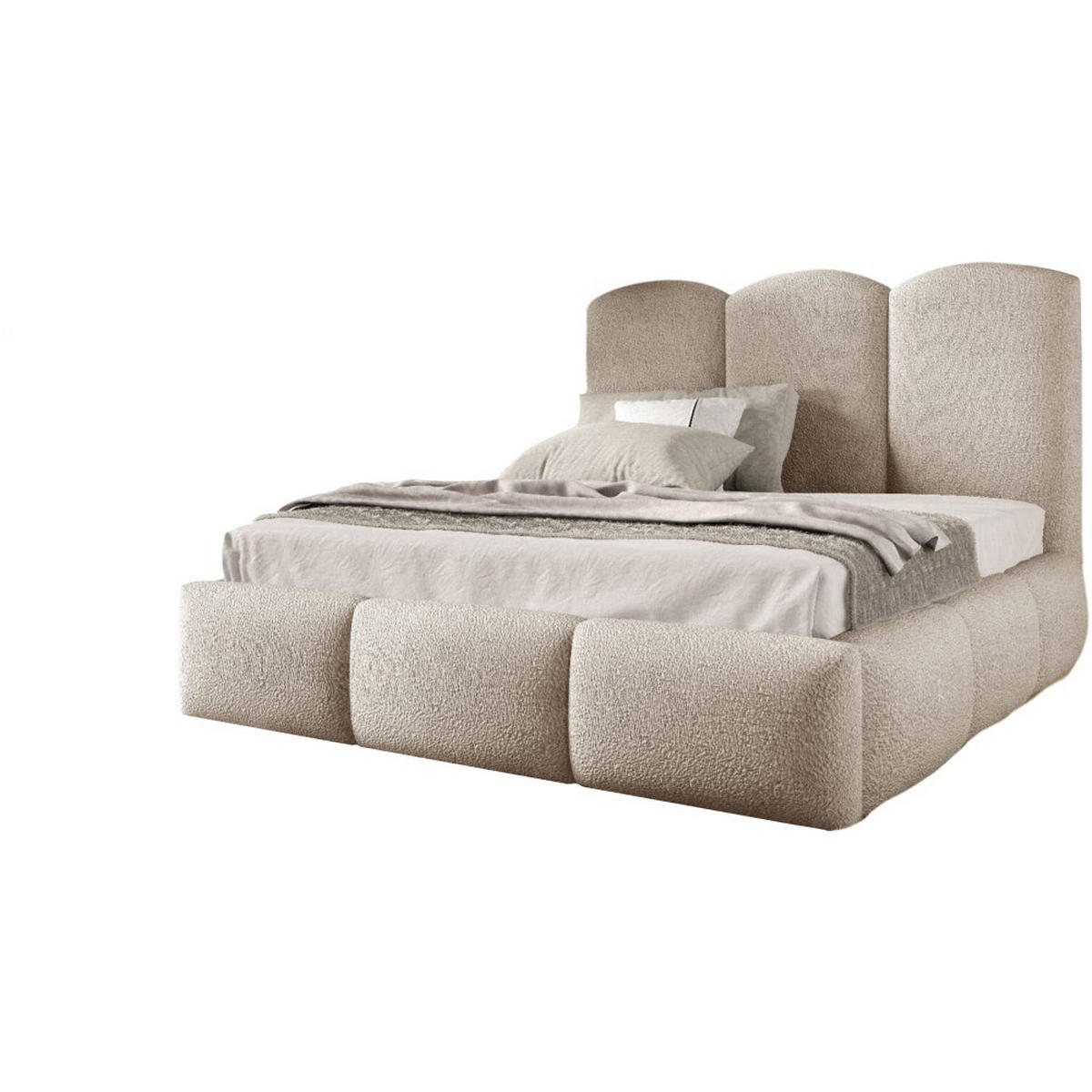 Beautysofa POLSTERBETT Bero, 180x180, Bouclé-Stoff, Beige
