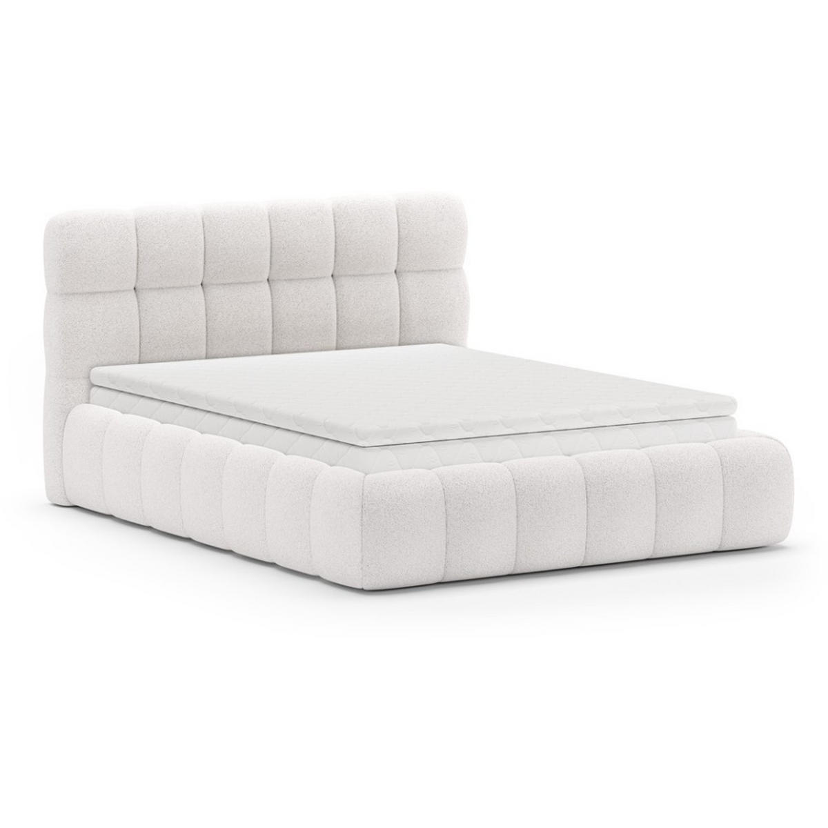 Der hochwertige PRIME-Polsterstoff verleiht dem Bett eine edle Haptik und ansprechende Optik, während der massive Holzrahmen Stabilität und Langlebigkeit garantiert. Das Kopfteil mit dekorativer Steppung rundet das stilvolle Design harmonisch ab und unterstreicht den modernen Charakter des Betts.