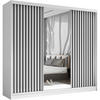 Im Inneren überzeugt der Kleiderschrank Helix durch seine durchdachte Aufteilung. Je nach Größe verfügt er über mehrere Einlegeböden und Kleiderstangen, die Ihnen vielfältige Möglichkeiten bieten, Ihre Kleidung übersichtlich und griffbereit zu verstauen. Ob Hemden, Kleider, Hosen oder Accessoires – alles findet seinen Platz und ist stets ordentlich aufgeräumt. Der Kleiderschrank Helix kombiniert Funktionalität mit zeitgemäßem Design. Die eleganten Lamellen und der große Spiegel an den Türen machen ihn zu einem echten Blickfang in Ihrem Schlafzimmer oder Ankleidezimmer.