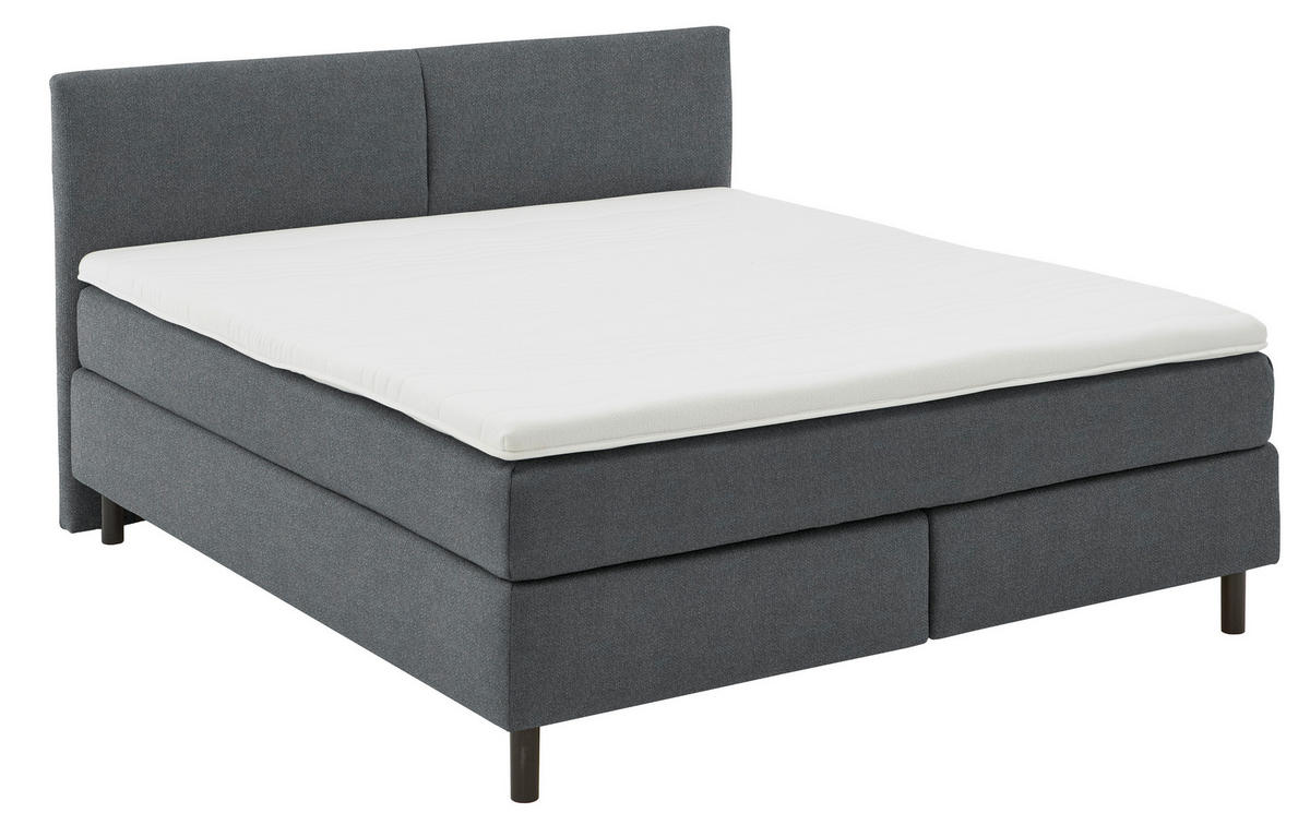 Schwarz, die zudem das Design stylish aufwerten. Stellen Sie mit diesem Boxspringbett (ca. 180 x 200 cm) in Anthrazit inklusive Matratze, Topper und gepolstertem Kopfteil die Weichen auf Behaglichkeit!