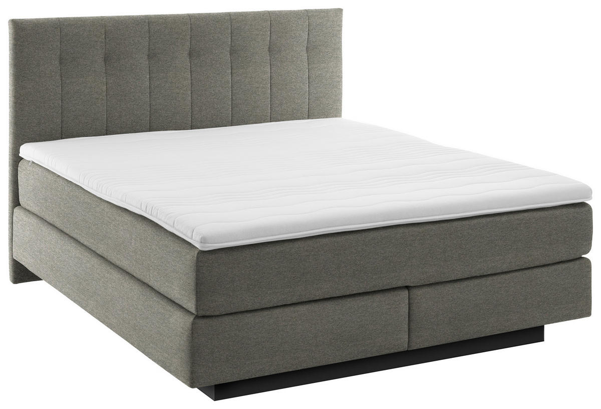 Schwarz. Machen Sie es sich gemütlich in diesem Boxspringbett (ca. 200 x 200 cm) in Braun mit Matratze, Topper und gepolstertem Kopfteil und genießen Sie jede Minute!