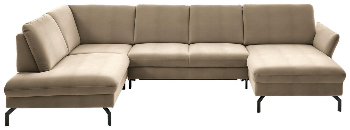 Wohnlandschaft (U-Form) mit Federkern in Sandfarben für bequeme Relax-Stunden