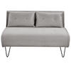 Eindrucksvolle Couch für 2 Personen mit Bettfunktion und Zierkissen. Ein kompakter Sitz- und Liegeplatz im einem. Beim Ausklappen genügt es die verstecken Metallbeine aus dem Bezug herauszunehmen, um sehr schnell einen gemütlichen Liegeplatz beim Fernseher oder ein Bett für Übernachtungsgäste zu gewinnen. Die breite Sitzfläche ist besonders dick, so sitzt man auf dem Modell regelrecht königlich. Zudem bezaubert das Polstersofa mit seiner formschönen Konstruktion, die mit schwarz bemalten Harpin Beinen und einem weichen Stoffbezug veredelt wurde. So sorgt der 2-Sitzer für eine gelassene, dennoch stilbewusste Optik im Schlaf- oder Wohnbereich.