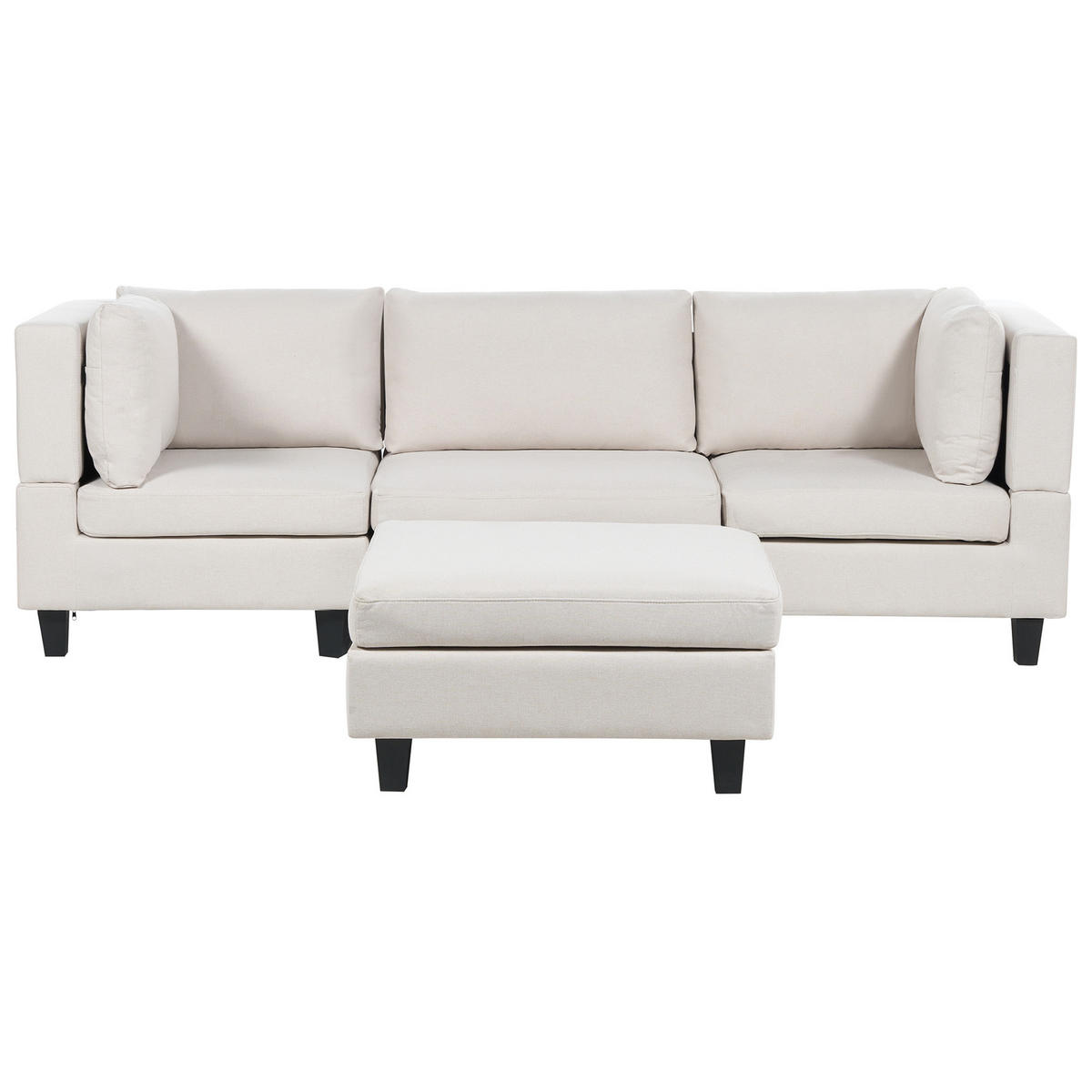 Beliani 3-SITZER-SOFA Leinenoptik hellbeige mit Ottomane Unstad
