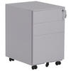 Verschiebbarer Schrank mit 3 geräumigen Schubladen. Kompakte Größe auf Rädern die jeden begeistern wird. Der robuste Metallschrank kann je nach Bedarf spielend leicht in Ihre Nähe verschoben oder auch unter dem Tisch versteckt werden. In der abschließbaren Schublade sind all Ihre vertraulichen Dokumente bestens aufgehoben, vor Staub und jeglichen Blicken geschützt. Dank der stabilen, geschweißten Konstruktion aus kaltgewalztem Stahl können auch schwerere Sachen auf den Ablageflächen platziert werden. Die glatten Oberflächen des Modells sind sehr leicht zu reinigen.