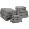 Flauschige Handtücher in verschiedenen Formen mit einem passenden Badteppich. Mit diesem Handtuch-Set ist die Wellnessoase in Ihrem Badezimmer einfach perfekt! Die Frotteetücher wurden aus qualitativer, pakistanischer Baumwolle mit Low-Twist-Fasen hergestellt, weshalb sie besonders weich und saugfähig sind. Das Frotteewäsche Set besteht aus Badematte und 10 Tüchern in verschiedenen Größen, die sowohl Ihr Gästebadezimmer, als auch privates Bad dekorativ und funktional aufwerten.