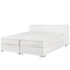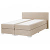 Elegantes und bequemes Boxspringbett in Beige. Traditionell wird dieses Modell mit einer Taschenfederkern-Matratze in Härtegrad H2 (mittel) kombiniert, wodurch der Körper gleich doppelt durch die Federkerne unterstützt wird. Optional ist ein bequemer Matratzen-Topper aus Kaltschaum erhältlich. Das komplette Bett ist in hochwertigen Stoffbezug in Beige aus Polyester eingearbeitet. Das strapazierfähige Material verleiht dem Bett eine edle und samtige Oberfläche. Gestützt wird das Bett durch verchromte Füße und das weich gepolsterte Kopfteil.