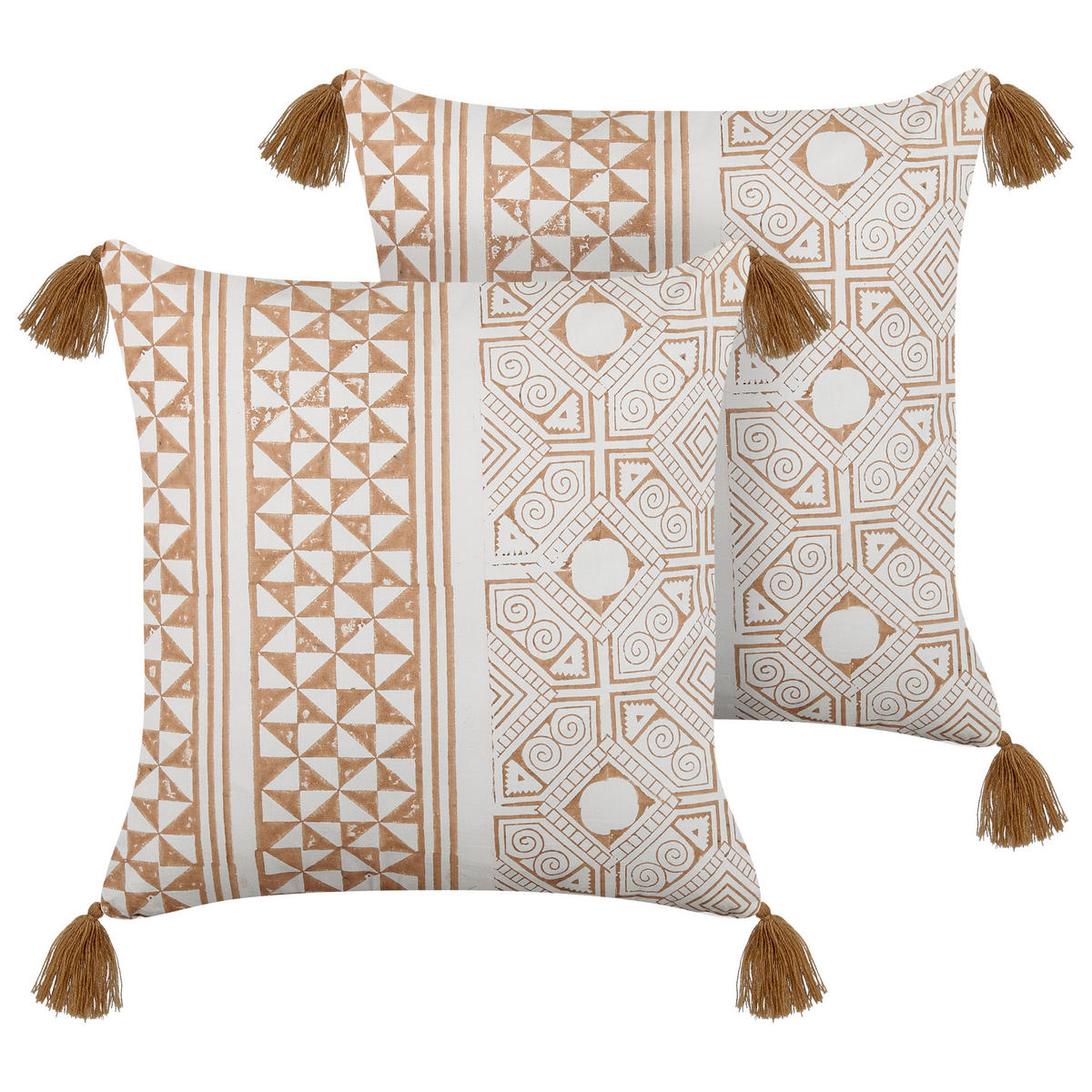 Quadratische Zierkissen mit handgefertigtem Blockdruckmuster. Diese Kissen mit einem aztekischen Muster sind eine traumhafte Idee, um einen exotischen Look in Ihren Raum zu bringen. Die Bezüge sind aus hochwertiger und strapazierfähiger Baumwolle gefertigt. Die abziehbaren Hüllen und versteckten Reißverschlüsse machen die Kissen sehr pflegeleicht. Die orientalischen Motive sind mit Liebe zum Detail per Hand auf die Kissenbezüge aufgetragen worden. So ist jedes der Modelle originell und einzigartig. Nutzen Sie die Baumwollkissen als Deko auf Ihrem Sofa, Sessel oder Bett, um immer einen gemütlichen Begleiter beim Ausruhen zu haben.