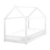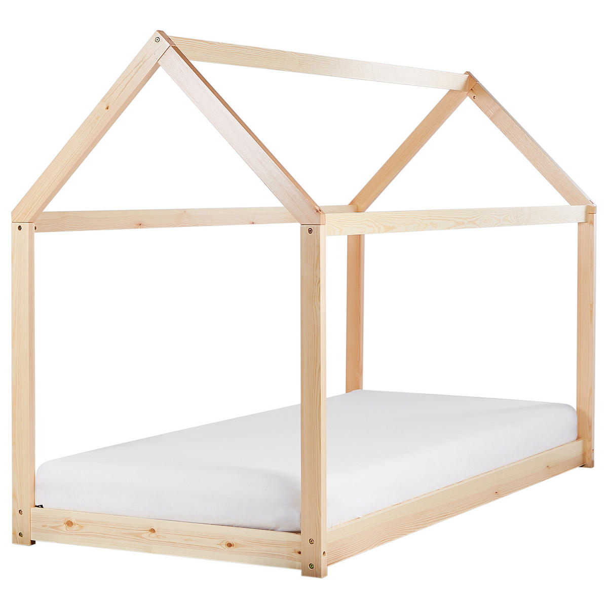 Bett in Form eines Hauses für das Kinderzimmer. Dieses bezaubernde Hausbett ist ein wahr gewordener Traum für jedes Kind. Der aus Kiefernholz gefertigte Rahmen wurde niedrig gebaut, so dass er für Kleinkinder sicher und leicht zugänglich ist. Der mitgelieferte Lattenrost ist für eine Matratze in Einzelgröße geeignet und bietet stabilen Halt. Das verspielte Design des Bettes regt die Fantasie an und macht die Schlafenszeit Ihres Kindes zu einem fröhlichen Abenteuer.