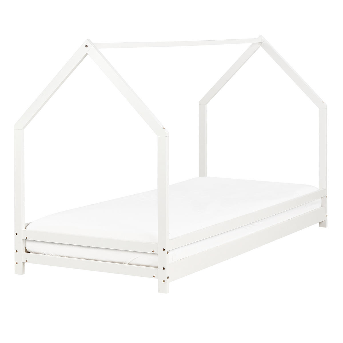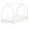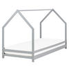 Kinder-Bettgestell in Hausform mit passendem Lattenrost. Dieses vielseitige Bett in Form eines Hauses ist die perfekte Ergänzung für das Kinderzimmer und verleiht ihm einen minimalistischen Touch. Das aus Kiefernholz gefertigte Möbelstück ist robust, stabil und pflegeleicht, so dass es viele Jahre lang in einwandfreiem Zustand bleibt. Ein Lattenrost sorgt für Komfort und eine gleichmäßige Verteilung des Körpergewichts. Verwandeln Sie das Kinderzimmer mit diesem bezaubernden Produkt in ein himmlisches Schlafparadies.