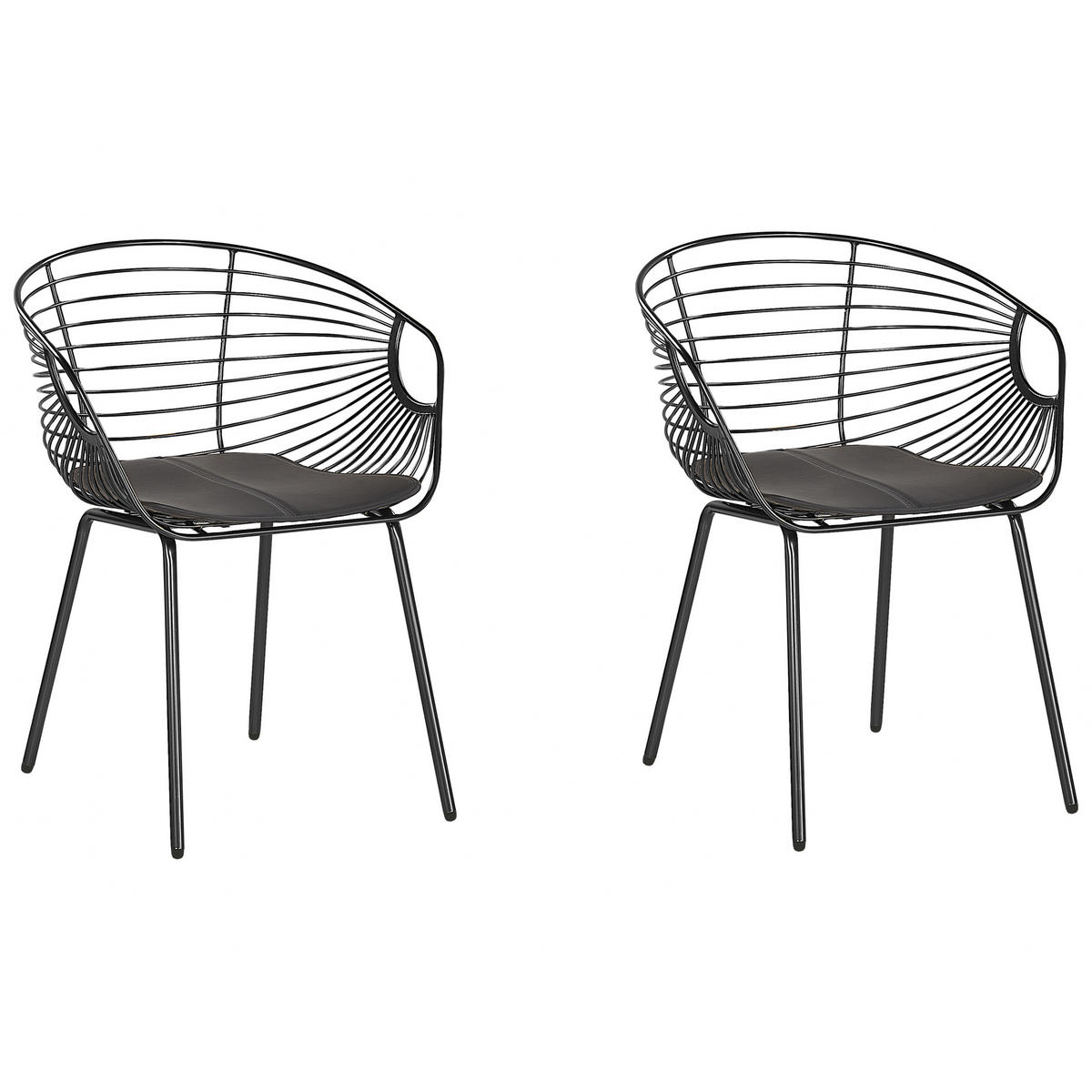 Elegante, schwarzfarbene Esszimmerstühle mit Metallic-Effekt. Diese von industriellen Formen inspirierten Metallstühle passen zu vielen Innenräumen. Die schöne schwarze Farbe und die schlanken Beine verleihen Ihrem Wohnbereich einen elegante Atmosphäre. Die wundervolle Verarbeitung, die edle Ausstrahlung und die schlanken Beine machen sie zu einem eindrucksvollen Modell. Die formschöne Sitzschale und die praktischen schwarzen Sitzkissen aus Kunstleder sorgen für ein angenehmes Sitzgefühl.