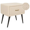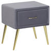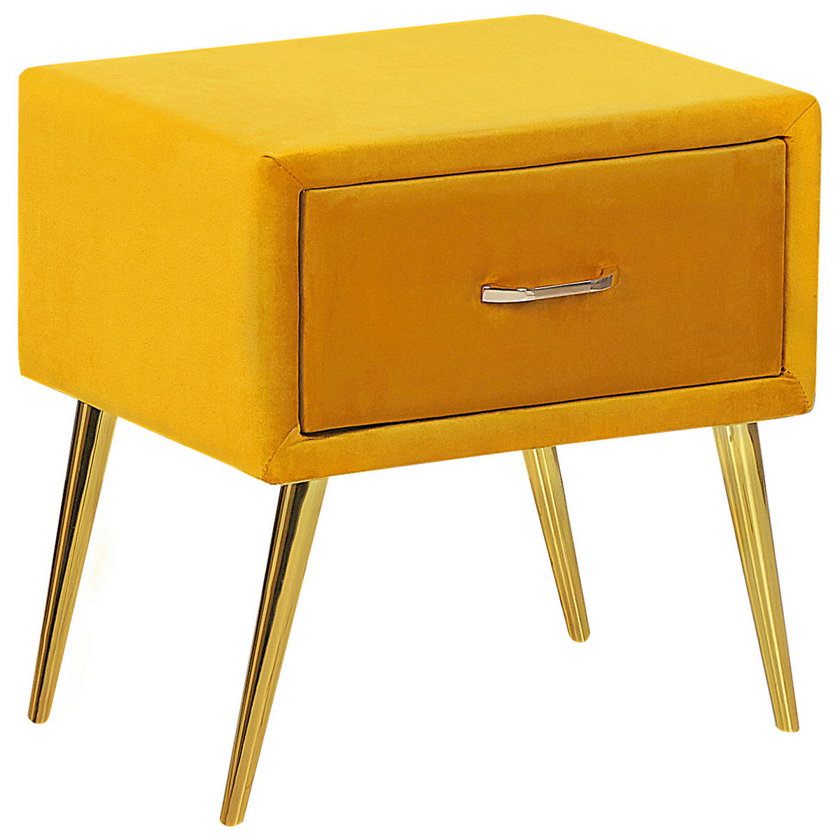 Moderner Samt-Nachttisch mit 1 Schublade. Dieser Nachtschrank ist mit seiner eleganten Gestaltung eine hervorragende Ergänzung zu Ihrer Einrichtung. Gefertigt aus widerstandsfähigem Holz, bezogen mit edlem hochwertigem Samt strahlt er gemütliche Behaglichkeit aus. Die leichtgängige Schublade mit dekorativem Griff bietet Ihnen genügend Platz, um kleine Gegenstände diskret und griffbereit zu verstauen. Die schmalen, abgeschrägten Beine geben Stabilität und unterstreichen das moderne Design. Nutzen Sie das vielseitige Schränkchen als Nachttisch im Schlafzimmer, als Beistelltisch im Wohnzimmer, oder auch als kleines Schränkchen im Eingangsbereich.