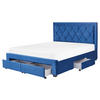 Luxuriöses Samtbett im edlen Chesterfield Look mit 3 praktischen Schubladen. Dieses gepolsterte Bett bringt Ordnung in Ihr Schlafzimmer und sorgt für eine glamouröse Ausstrahlung. Der hochwertige Samtstoff-Bezug ist sehr langlebig und besitzt eine angenehme Haptik. Die charmante Knopfheftung und rautenförmigen Nähte am Kopfteil des Doppelbettes ziehen jedes Auge magisch an. Das hohe, gepolsterte Kopfteil sorgt dafür, dass Sie sich bequem anlehnen können. Dank den 3 praktischen, rollbaren Schubladen verstecken Sie die Bettwäsche im Handumdrehen, nutzen dabei die Unterseite des Modells voll aus und haben dabei mehr Platz für andere Schlafzimmermöbel. Der Massivholz-Lattenrost lässt Sie eine erholsame und komfortable Nacht genießen.