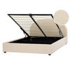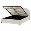 Minimalistisches Doppelbett mit halbrundem Kopfteil, hochklappbarem Lattenrost und praktischem Stauraum. Wenn Sie in Ihrem Schlafzimmer einen edlen Retro-Stil anstreben, sollten Sie auf angenehm weiche Stoffe und klassische Farben setzen. Kein anderes Bett passt besser zu diesem Einrichtungsstil als dieses hellbeiges Stoffbett. Die Polsterung fühlt sich nicht nur angenehm an, sondern ist auch pflegeleicht und langlebig – dank ihr wird das Möbelstück viele Jahre lang halten. Das Doppelbett verfügt über einen Stauraum, der es Ihnen ermöglicht, Ihre zusätzlichen Kissen und Ihr Bettzeug griffbereit aufzubewahren. Das hohe, gepolsterte Kopfteil sorgt dafür, dass Sie sich bequem anlehnen können.
