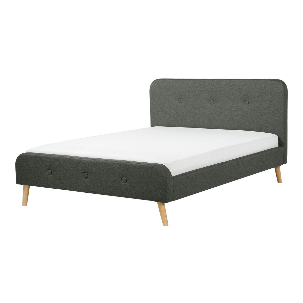 Exklusives Bett mit grauem Bezugsstoff in Leinenoptik. Das Bett ermöglicht Ihnen eine erholsame Bettruhe und wird Sie in einen angenehm tiefen Schlaf fallen lassen. Die sanfte graue Farbe des Polsterbettes in Leinenoptik ist im Einklang mit den hellen Holzfüßen, welche für Stabilität sorgen. Der elegante beige Bezugsstoff und die Form des Bettes werden Ihre Einrichtung stilsicher ergänzen. Die elegante Knopfverzierung von jeweils drei Knöpfen auf dem Kopfteil sowie am Fußende verleihen diesem Bett eine klassische Ausstrahlung.