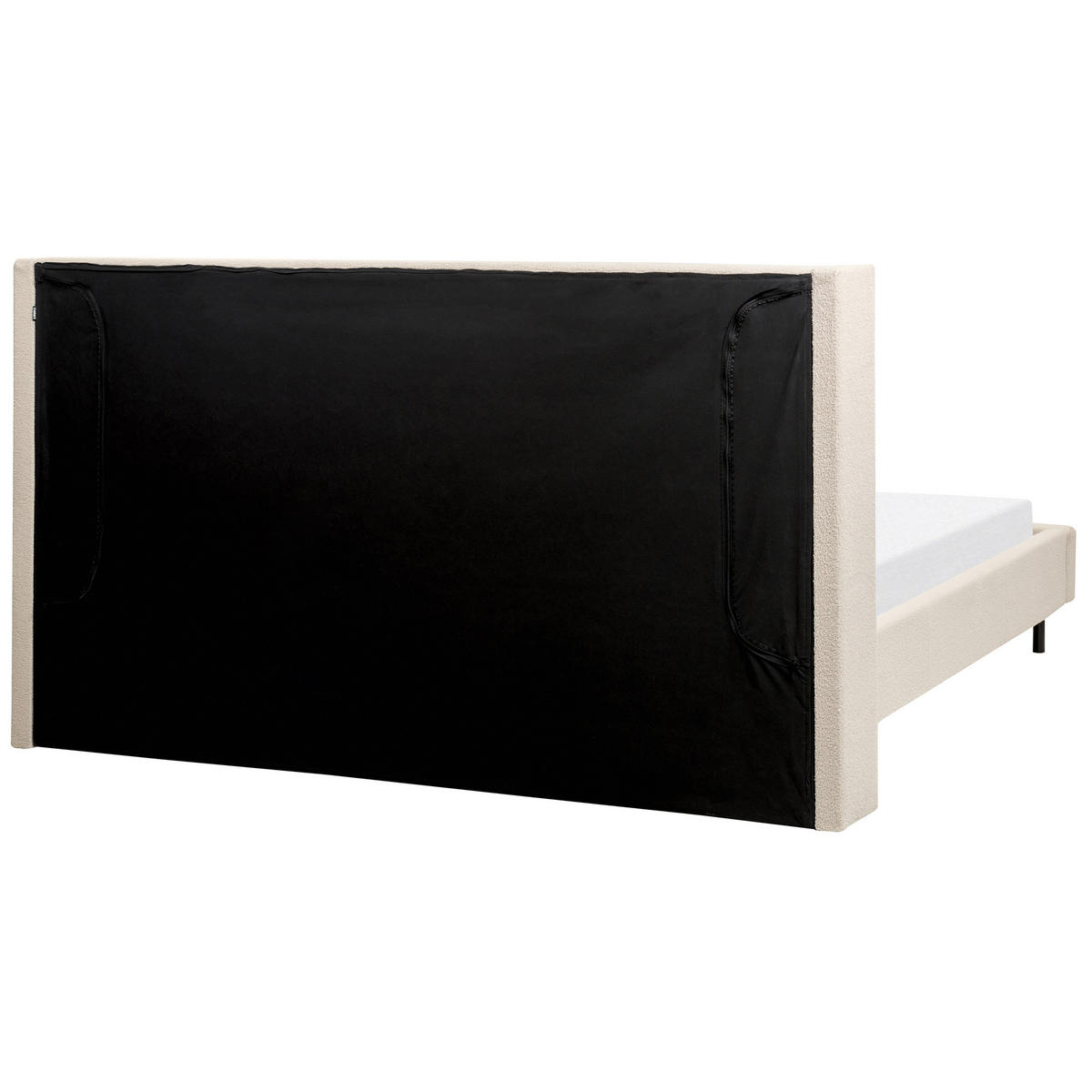 Bequemes Doppelbett mit schickem Bouclé-Bezug und schwarzen Metallbeinen. Benötigen Sie ein Bett, das gleichzeitig sehr komfortabel und wunderschön gestaltet ist? Dann ist dieses Doppelbett aus hochwertigem Bouclé-Stoff mit solidem Lattenrost für Sie. Das hohe, gesteppte Ohrensessel-Kopfteil sorgt für eine luxuröse Ausstrahlung und die stabilen, schwarzen Metallbeine unterstreichen den besonderen Charme des Stoffbettes. Dank einer Kombination aus elegantem Design und qualitativer Fertigung lädt das Ehebett zum Zurücklehnen und Entspannen ein.