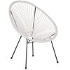 Trendy Spaghetti-Sessel in Weiß für den Innen- und Außenbereich. Dieser fröhliche, bequeme Stuhl ist aus einer robusten und besonders pflegeleichten Schnurbespannung aus PE Rattan in Weiß gefertigt, kombiniert mit einem stabilen, schwarzen Stahlgestell. In den bequemen und trendy Spaghetti-Sessel lassen sich heiße Sommertage prima aushalten. Das ausgefallene Design der Schnurbespannung hat einen herrlich luftigen Charakter. Der Stuhl ist ein praktischer Begleiter für alle Innen- und Außenbereiche.Fühlen Sie sich wie in Mexiko. Holen Sie sich Urlaubsstimmung und gute Laune in Ihren Garten oder auf Ihren Balkon.