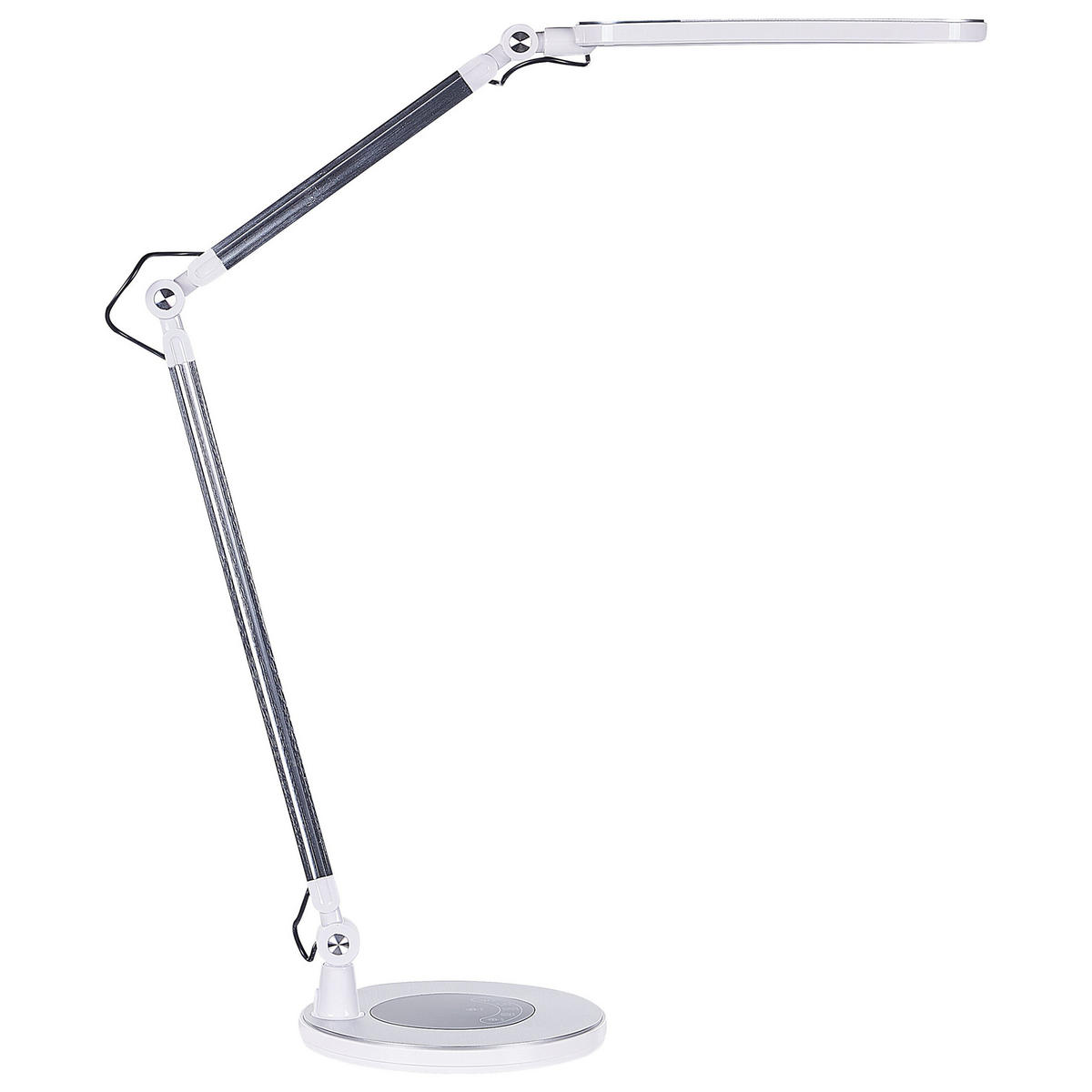 Arbeitslampe in modernem Design. Diese Lampe verbindet Minimalismus mit Funktionalität, und ist dabei auch ein stilvolles, platzsparendes Zubehör für Ihren Schreibtisch. Die Bürolampe hat einen praktischen Touchschalter und eine Lichtdimmfunktion. Sie verfügt über 3 Farbtemperaturen, die zum Entspannen, Arbeiten und Lesen geeignet sind. Das Produkt wurde aus Aluminium gefertigt, das für Stabilität und Langlebigkeit sorgt und gleichzeitig pflegeleicht ist. Die Leuchte ist zudem die ideale Ergänzung für alle Räume im Industrial Style oder im modernen Design.