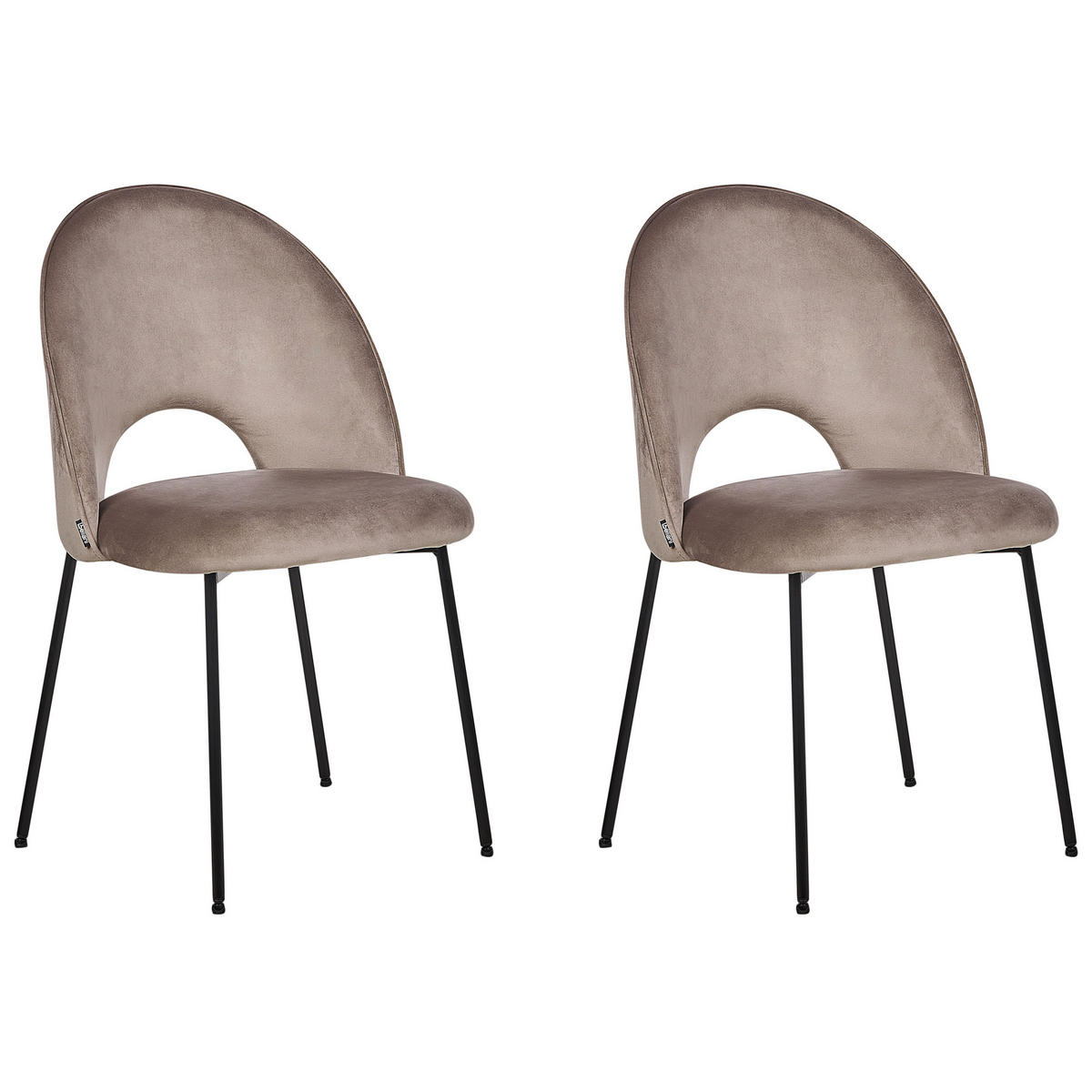 Formschöner Stuhl mit samtiger Polsterung im praktischen 2er Set. Die filigranen, schwarzen Füße harmonieren wunderbar mit der weichen Samtstoff-Polsterung in modernem Taupe und machen diesen Stuhl zum Designerstück schlechthin. Dieser Stuhl kann ganz universell im Schlafzimmer neben Ihrem Schminktisch oder als Esszimmerstuhl eingesetzt werden. Er wird vor allem in romantischen und klassischen Inneneinrichtungen eine gute Figur machen und kann dabei je nach Belieben mit hellen oder dunklen Dekoaccessoires ergänzt werden.
