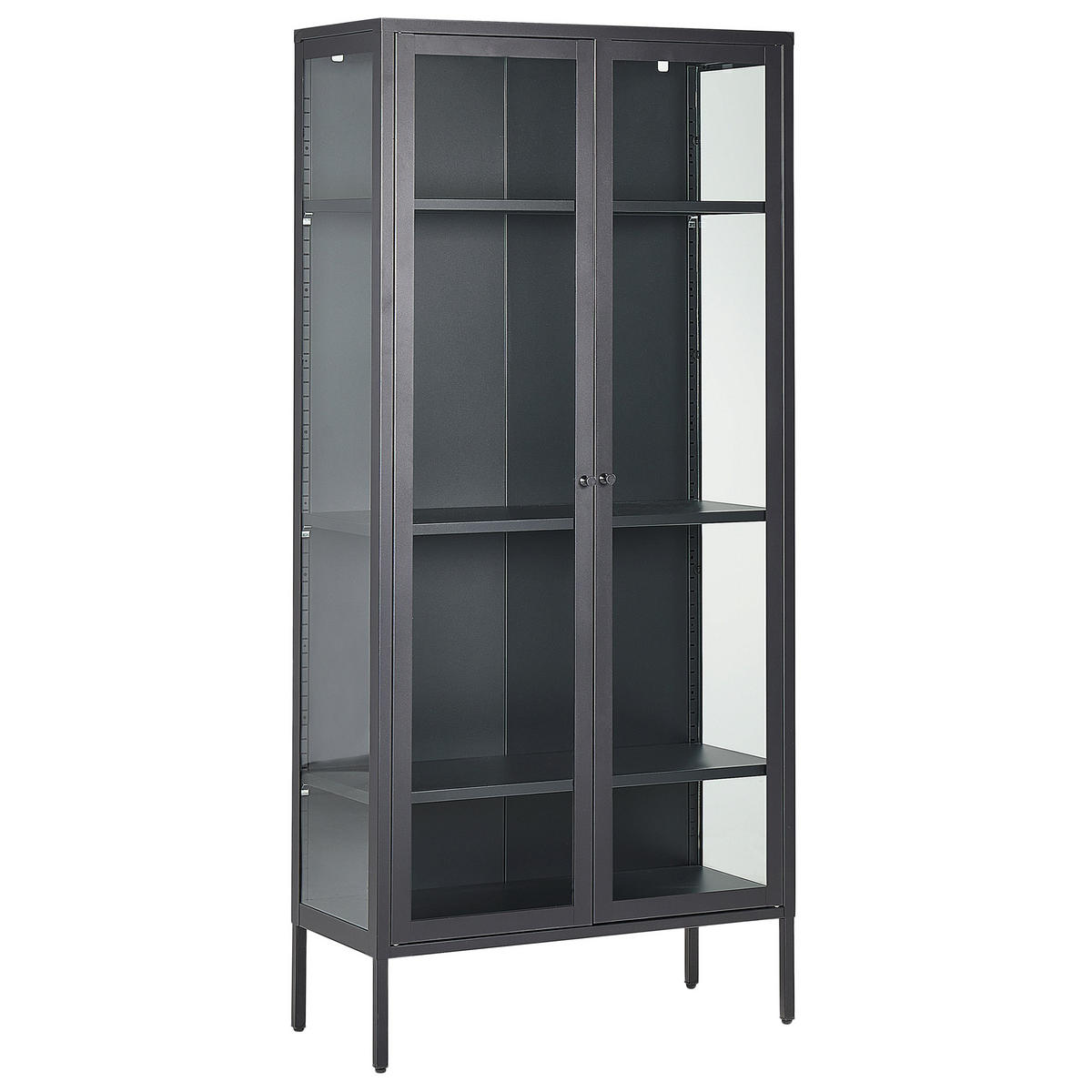 Moderner Metallschrank mit Glastüren. Präsentieren Sie Ihre Lieblingsdekoration so in Szene, dass sie in jedem Fall die Aufmerksamkeit auf sich zieht. Dieser Hochschrank mit vier geräumigen Fächern bietet Platz für jegliches Geschirr, Vasen oder Bücher. Stellen Sie sie auf kreative Weise zusammen, um Ihre eigene Kreation zu schaffen, die hinter der Glastür wunderschön aussehen wird. Die Stahlkonstruktion garantiert die Stabilität der Produkte, und die an den Beinen angebrachten Polster schützen den Boden vor Kratzern.