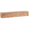 Schmaler TV-Hängeschrank mit 2 Klapptüren. Bereichern Sie Ihre Fernsehwand mit diesem stilvollen, dennoch geräumigen Lowboard. Da der TV-Schrank an der Wand montiert wird, können Sie ihn flexibel auf jeder Wunschhöhe anbringen. Er besitzt eine robuste Konstruktion, so können Sie ihn nicht nur als einfachen Hängeschrank nutzen, sondern auch einen bis zu 70-Zoll-Fernseher darauf abstellen. Die ergänzende Melaminbeschichtung sorgt dafür, dass der TV-Hängeschrank äußerst widerstandsfähig gegen Abrieb und Kratzer ist. Zudem besitzt er zwei geschlossene Fächer, in denen Sie Elektrogeräte und andere Gegenstände ordentlich unterbringen können. Sowohl die stilvolle Holz- und Ziegelsteinoptik als auch die grifflosen Fronten sorgen für einen angesagten Look, der sicherlich zu jeder modernen Raumgestaltung passen wird.