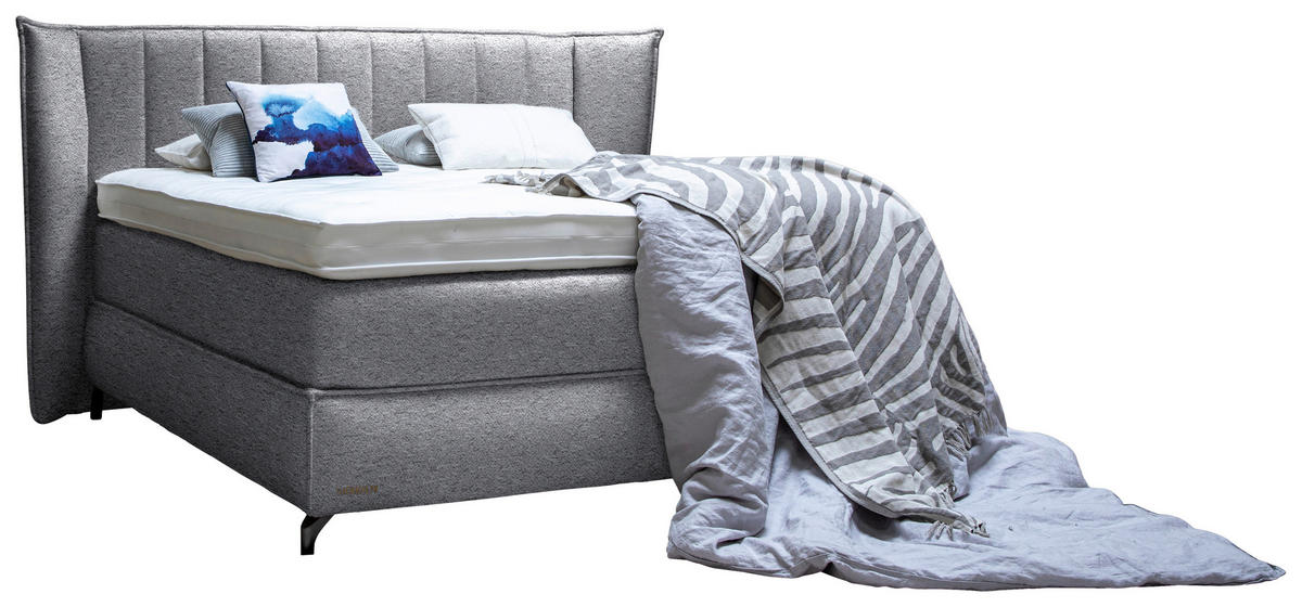 Schwarz und Nickelfarben werten das Design stylish auf. Relax-Mode on: Entdecken Sie, wie sich erholsamer Schlaf wirklich anfühlt, mit diesem Boxspringbett (ca. 160 x 200 cm) in Hellgrau inklusive Matratze, Topper und gepolstertem Kopfteil!
